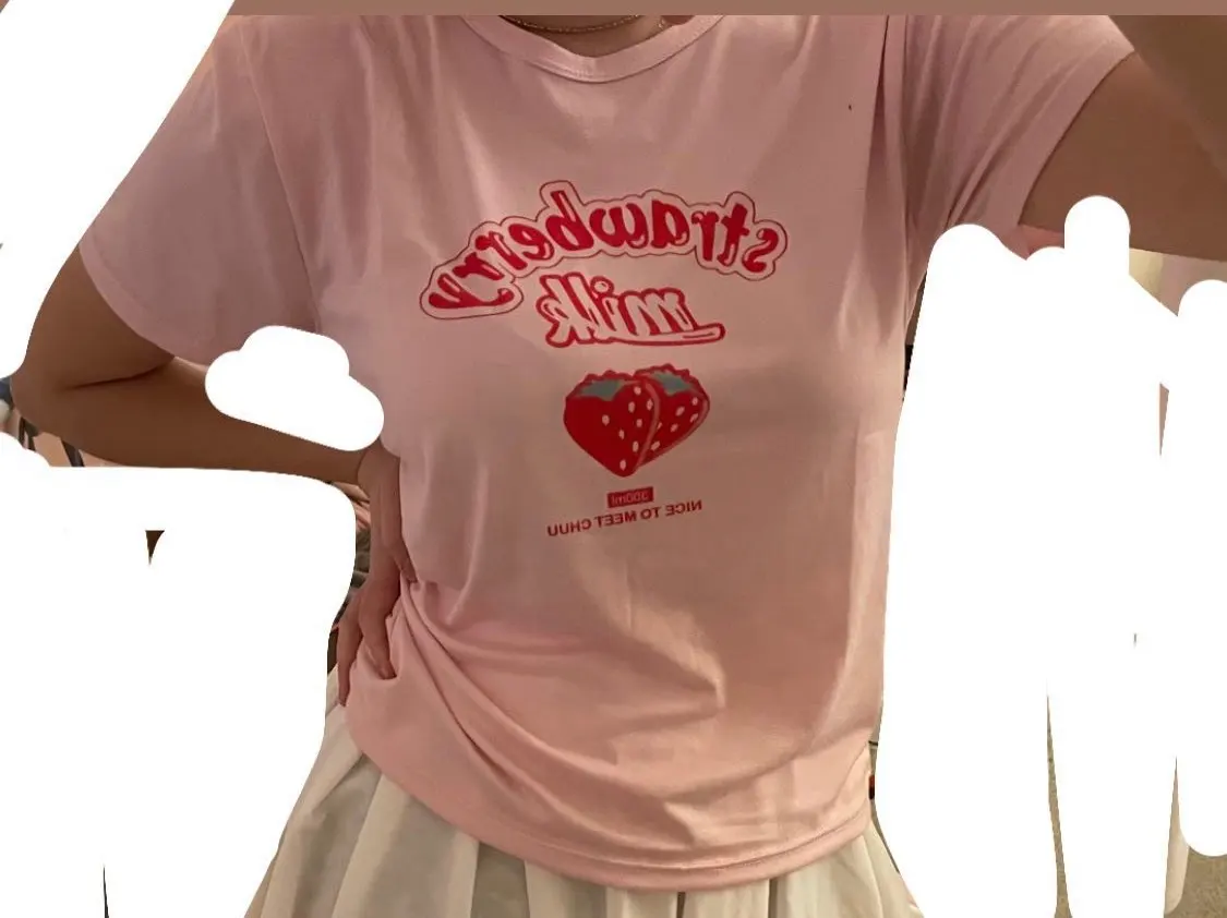 Футболка женская летняя, с принтом клубники, молочного цвета