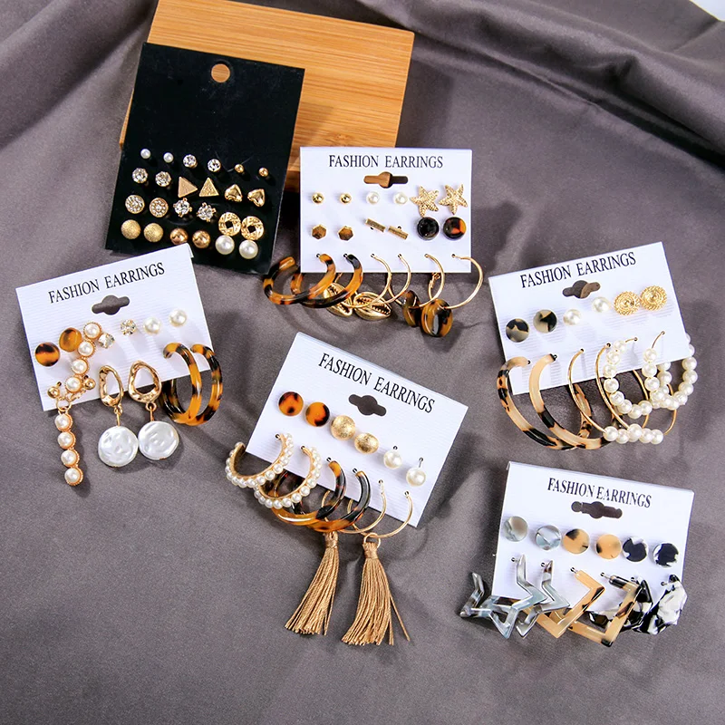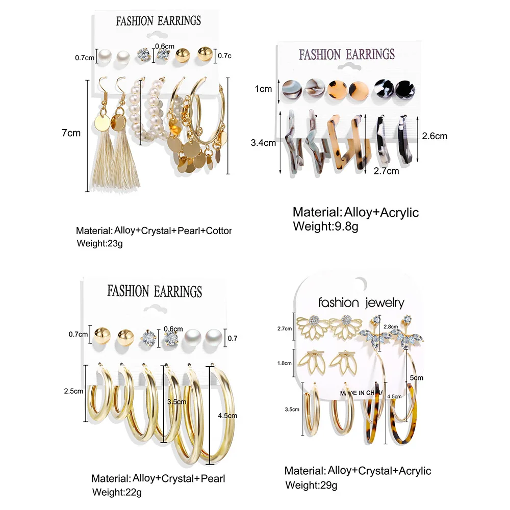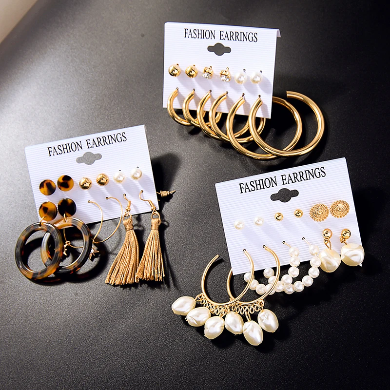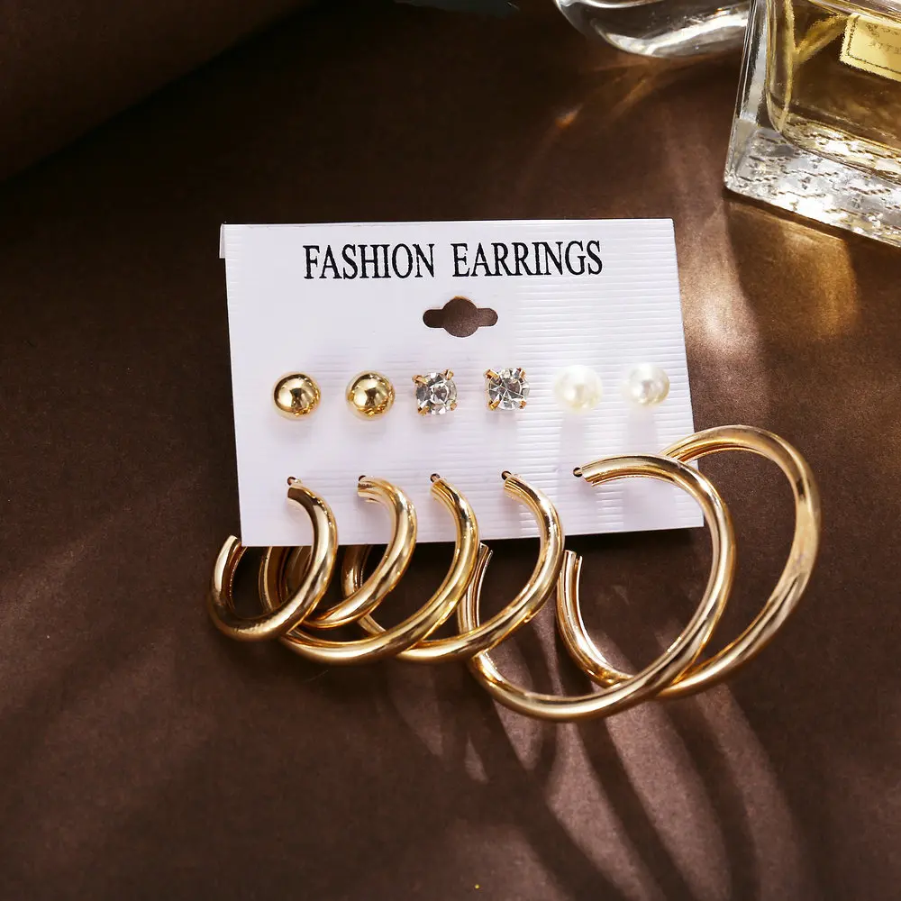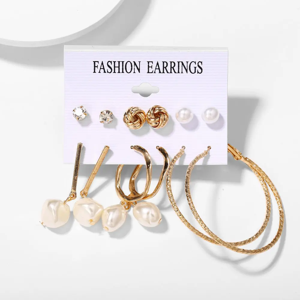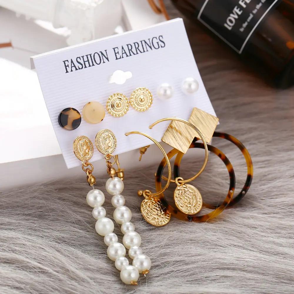 6 парупак. модные жемчужные серьги-кольца Комплект сережек для женщ...
