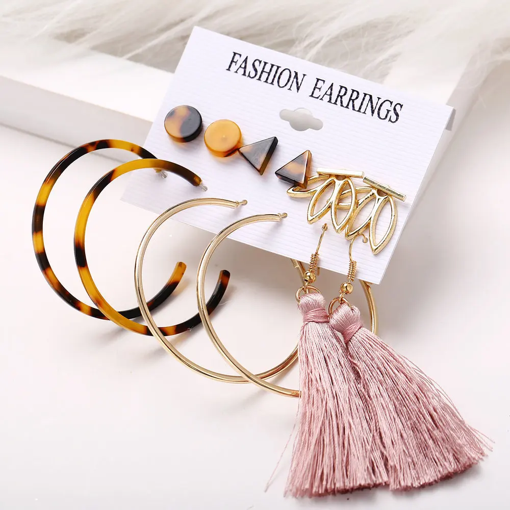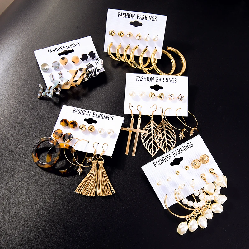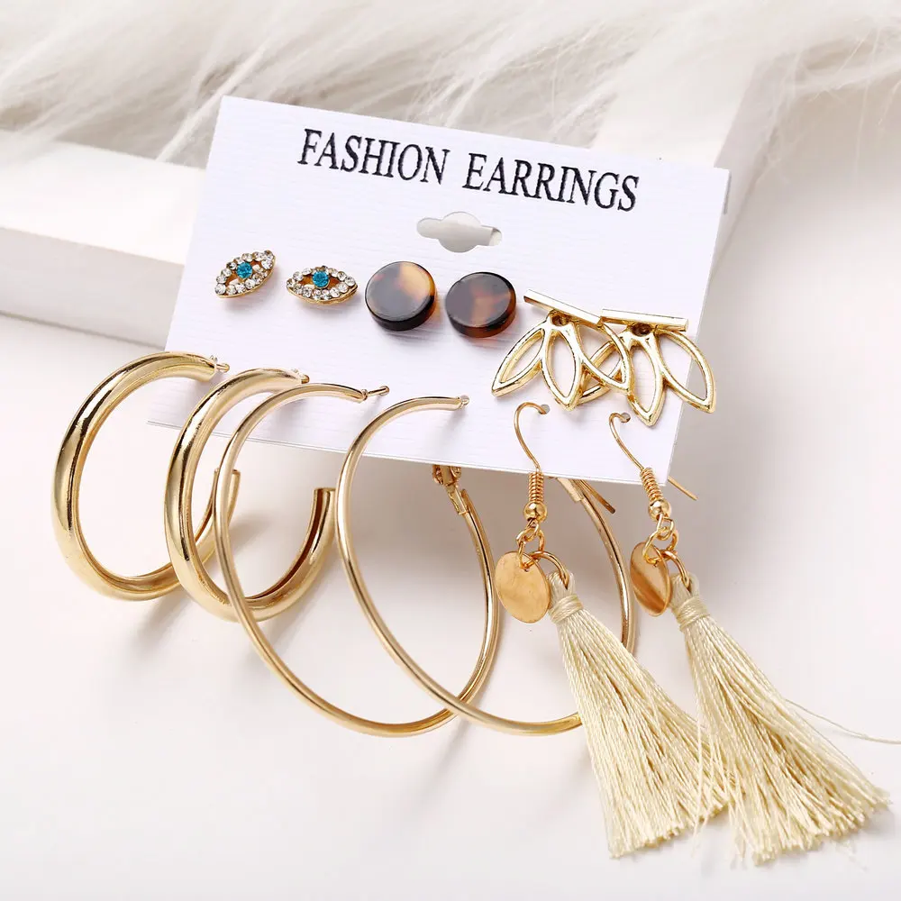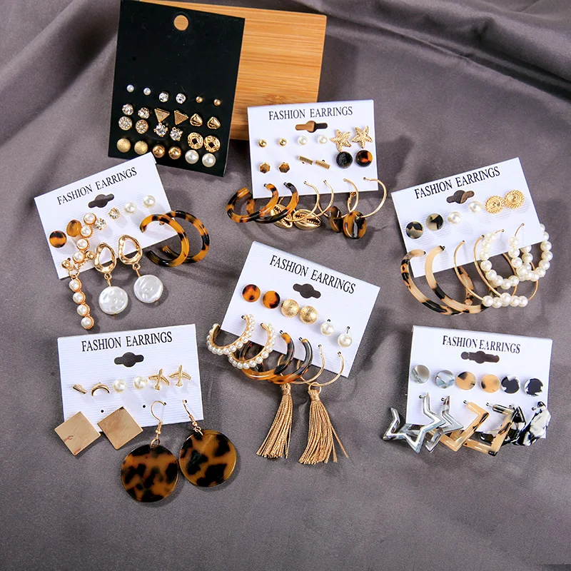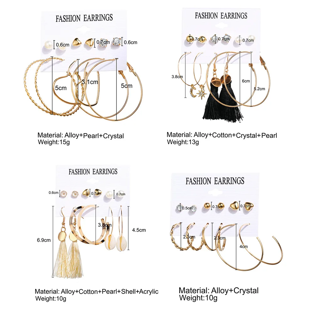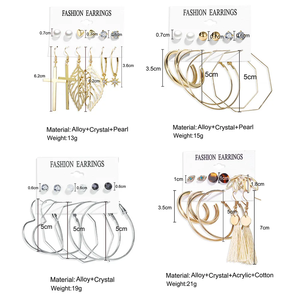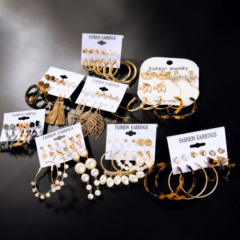 6 парупак. модные жемчужные серьги-кольца Комплект сережек для женщ...