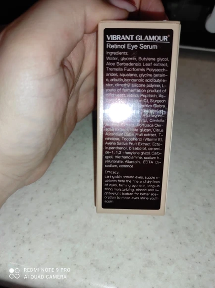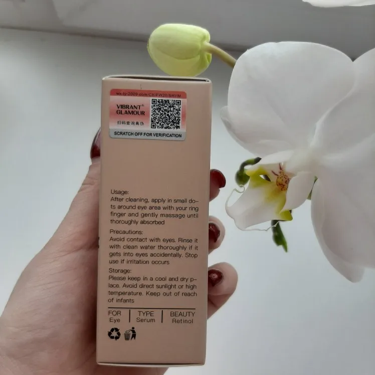Хорошая сыворотка под глаза. Есть лифтинг эффект, мелкие морщинки подтянулись. Кожу не сушит и не стягивает. Синяки и мешки не убирает. Срок годности есть на упаковке и на фото, а также прилагаю фото ингредиентов. Продавец в подарок положил тканевую маску для лица. Доставка заняла не больше месяца
