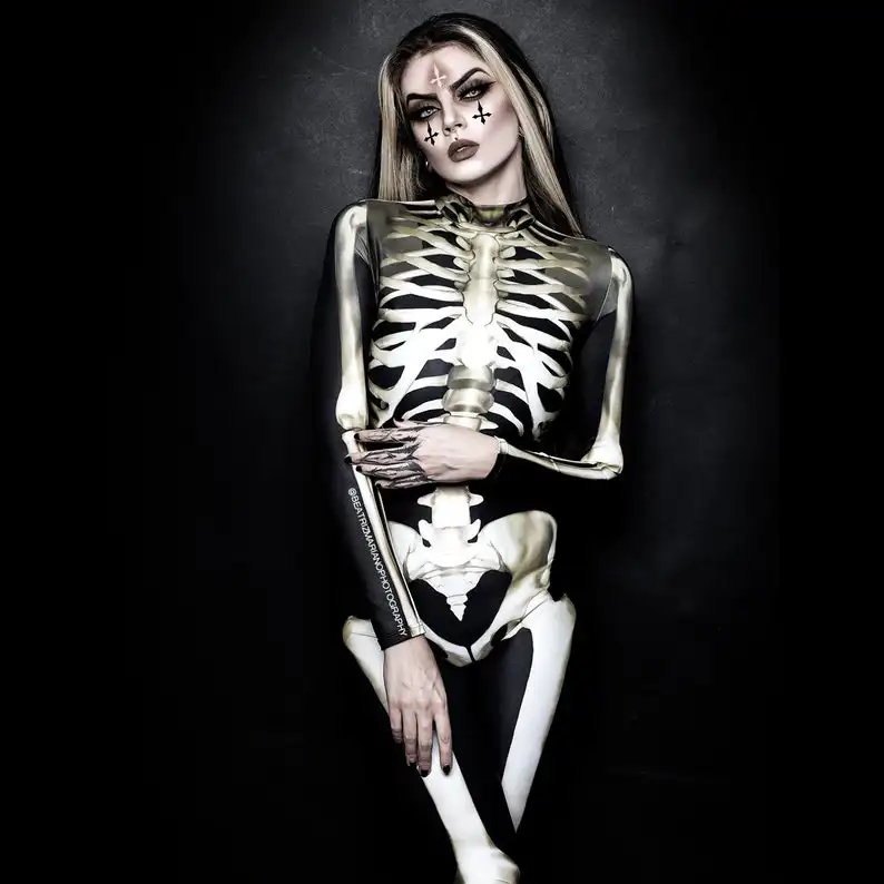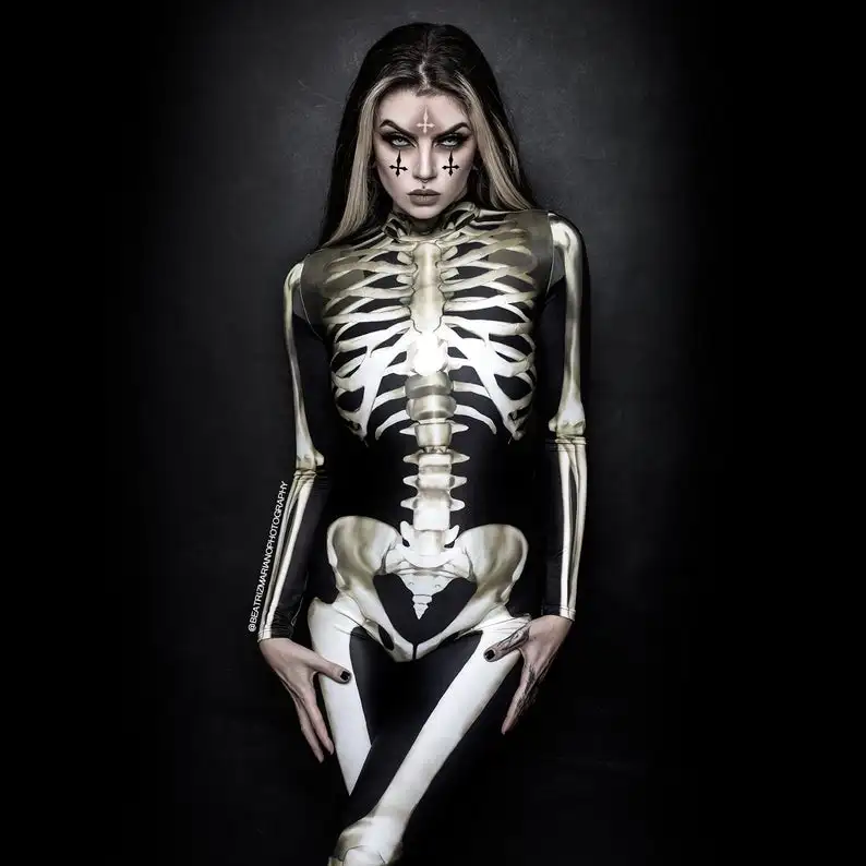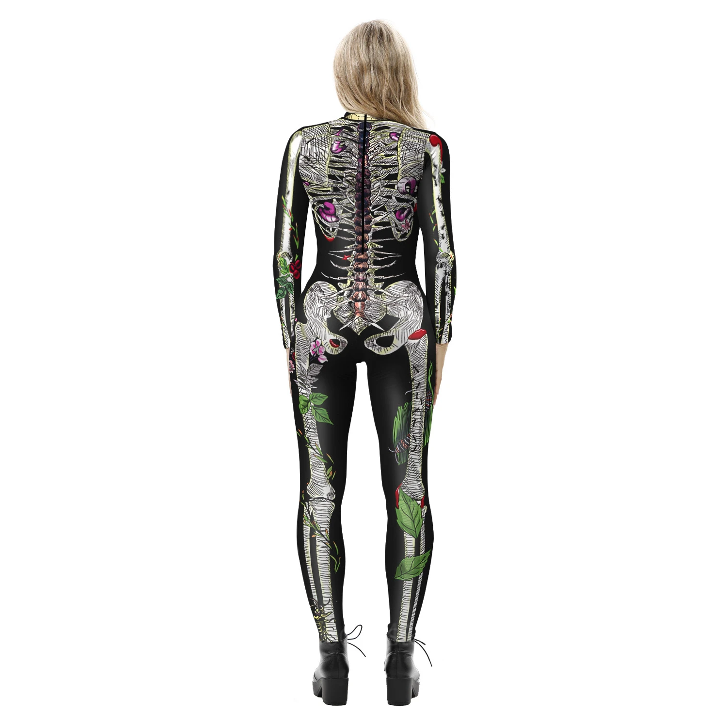 Комбинезон со скелетом, костюмы на Хэллоуин для женщин, страшный костюм для косплея, облегающий костюм для карнавала вечерние, уличная одежда, сексуальная женская уличная одежда