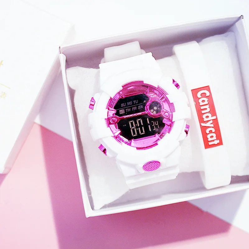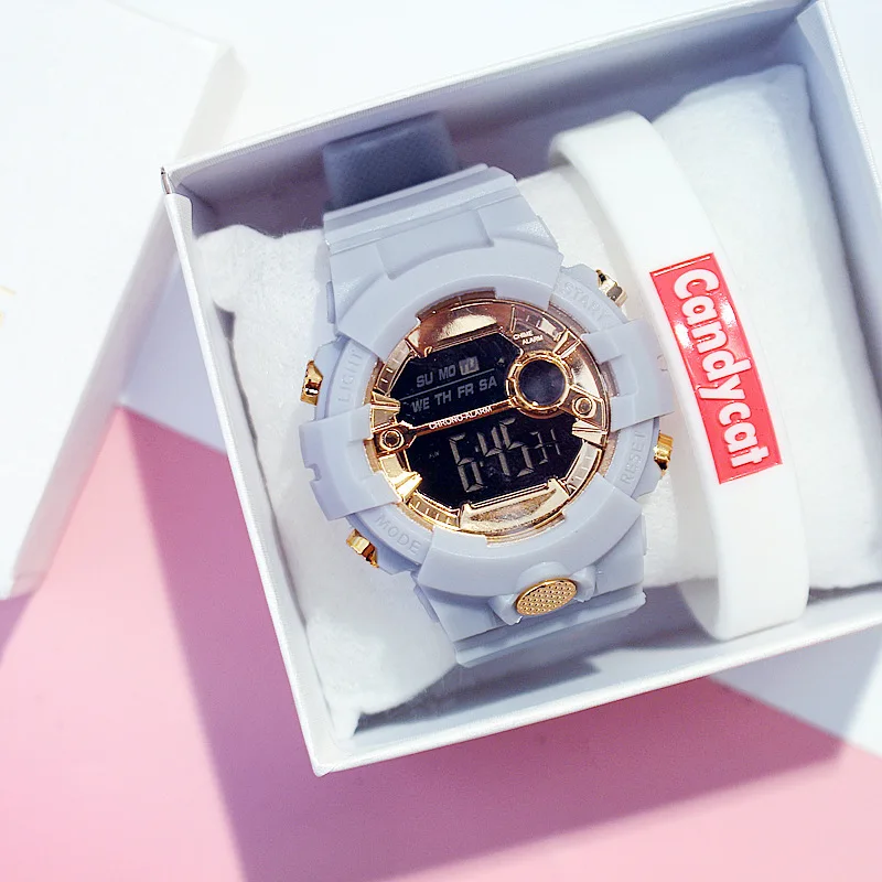 Цифровые Аналоговые часы конфетных цветов, стильные детские электро...