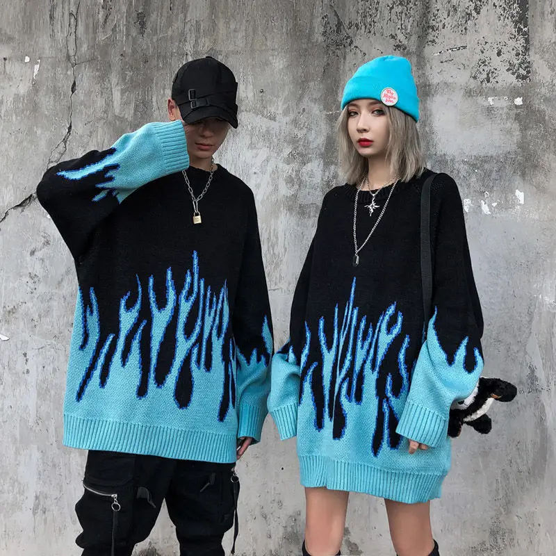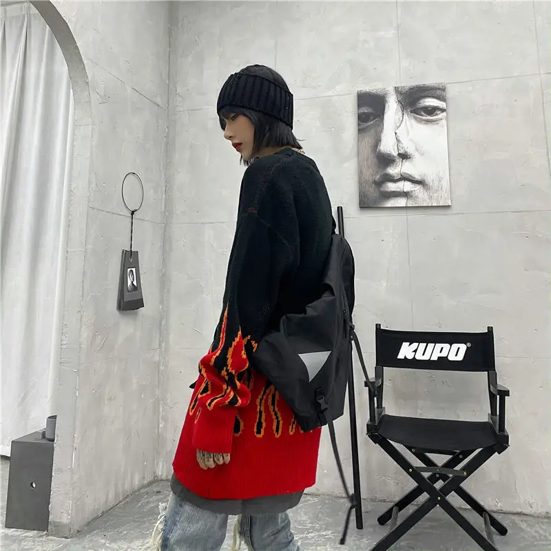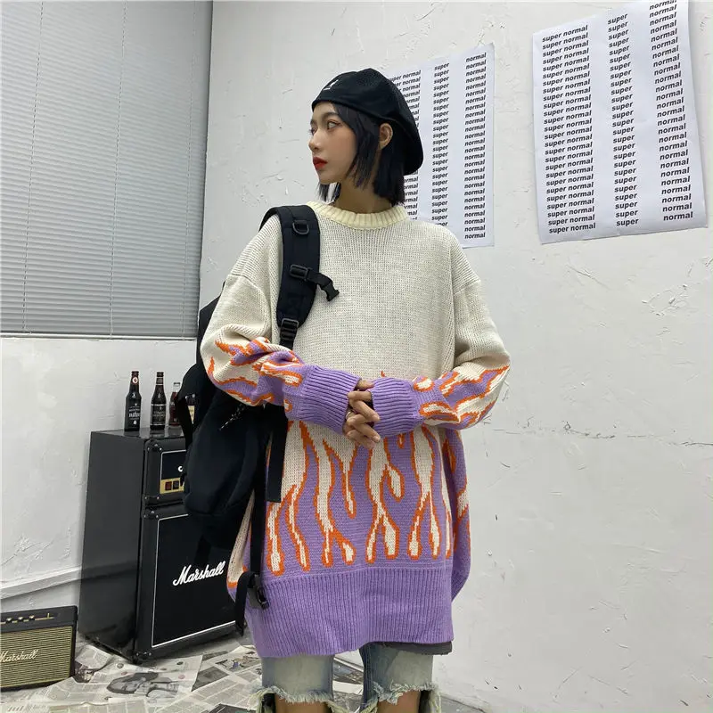 2021 новый свитер женский хип-хоп стиль пламя жаккардовый женский с...