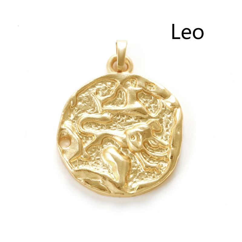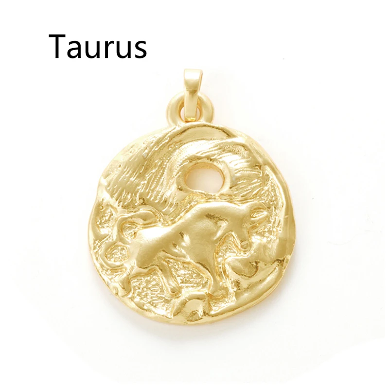Кулоны со знаками зодиака 12 созвездий для изготовления ювелирных изделий, золотые серьги сделай сам, колье, аксессуары на удачу, металлический медный циркон, отверстие 5 мм