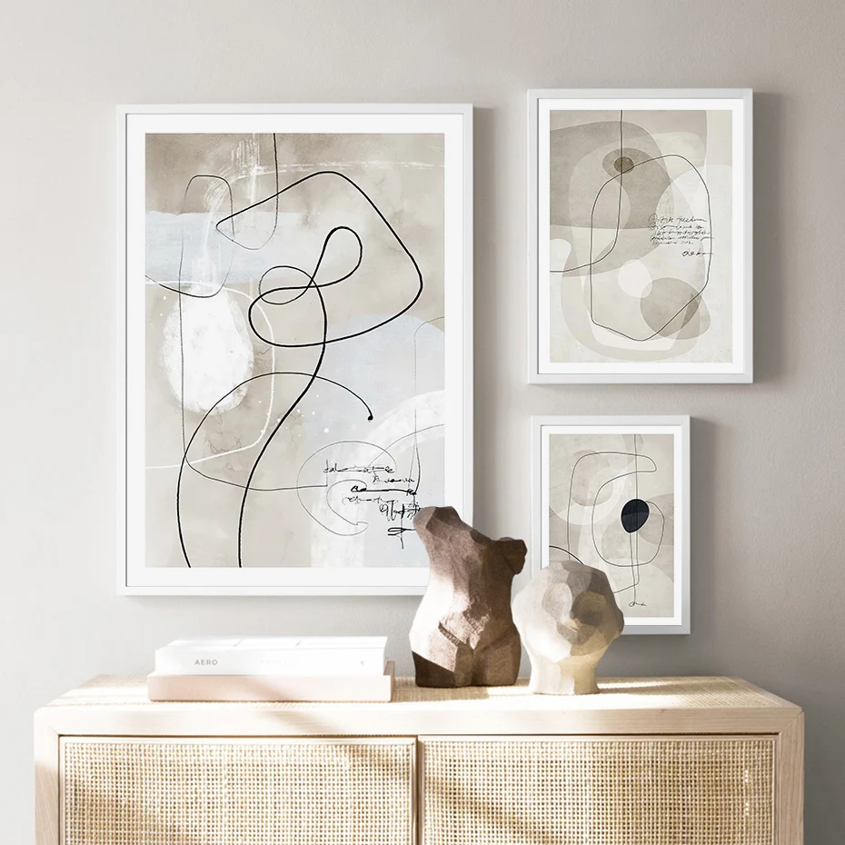 Скандинавский минималистский абстрактный серый женский бежевый лине...