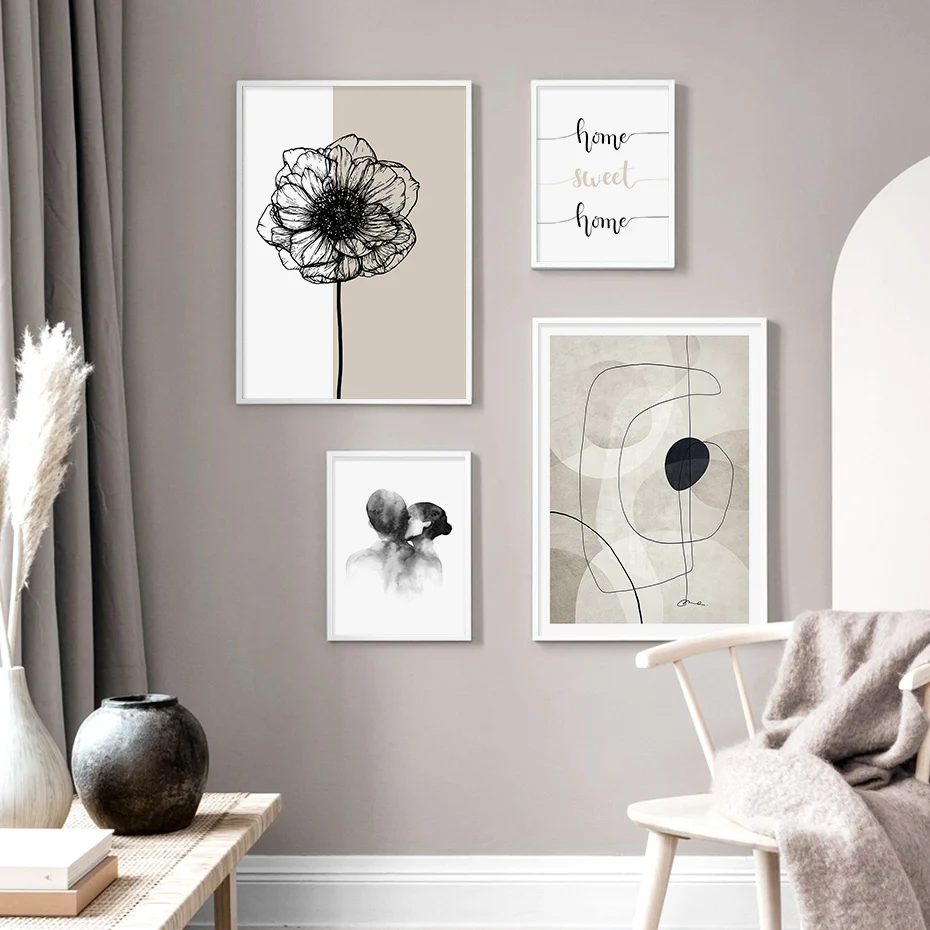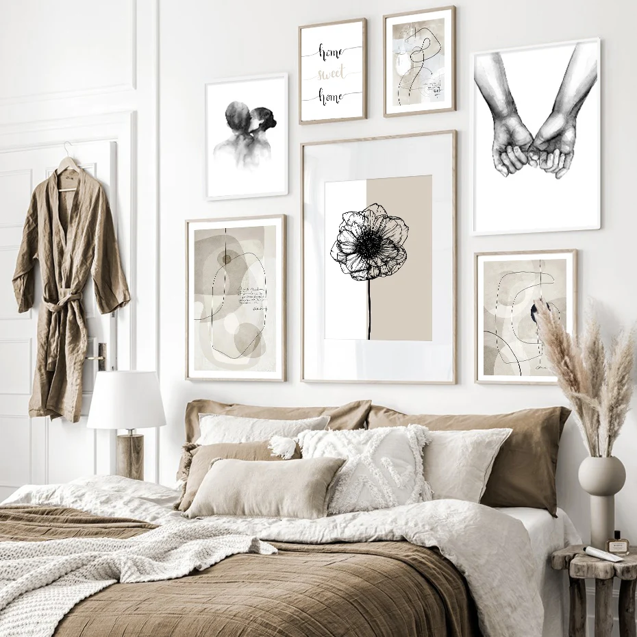 Современный абстрактный поцелуй Бежевый фон Милая домашняя Картина ...