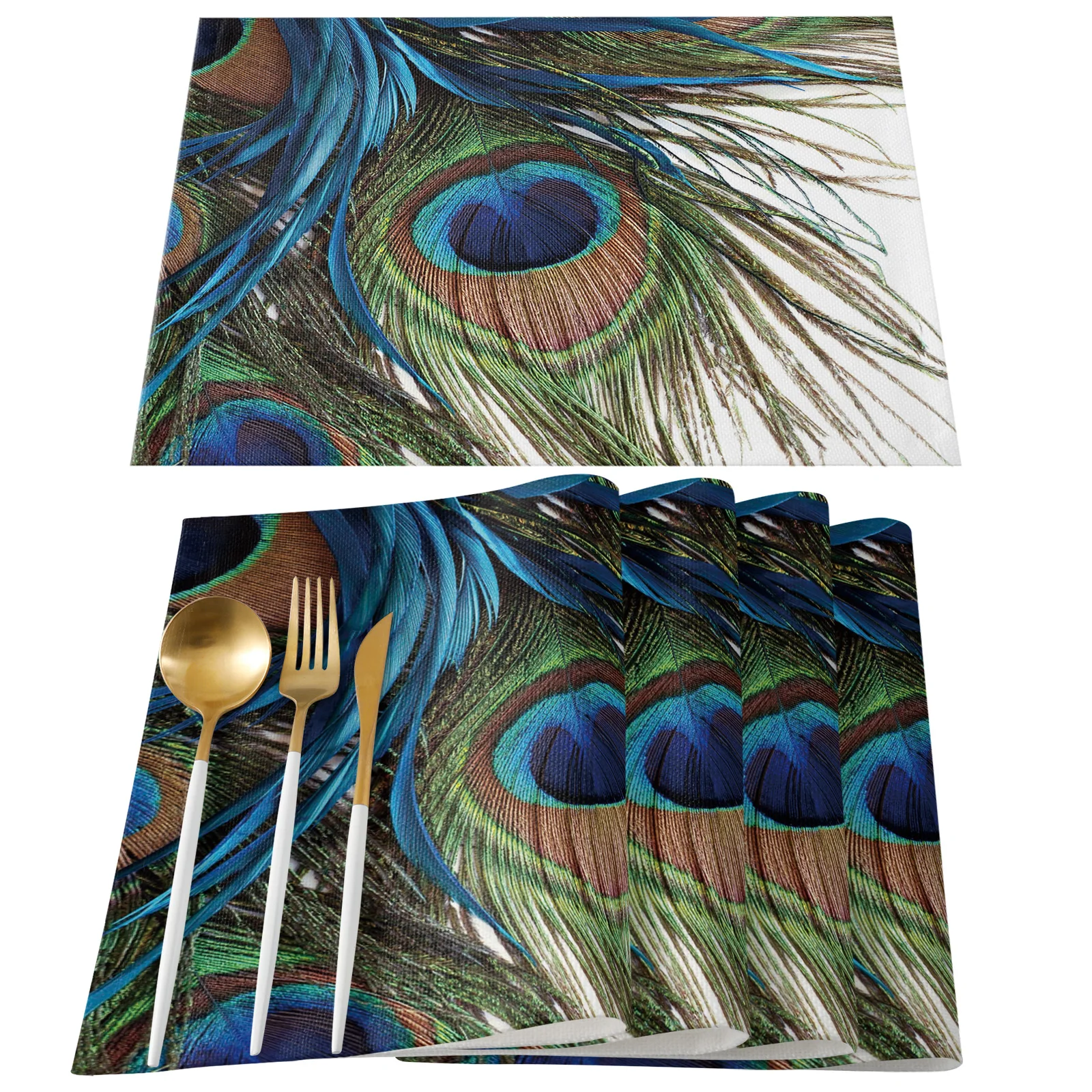 Украшения для стола с перьями павлина, рождественские украшения для стола, вечерние свадебные аксессуары для кухни, Camino De Mesa