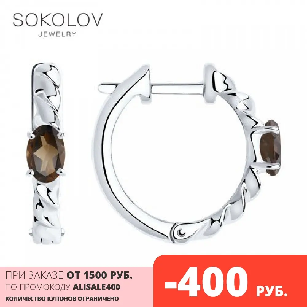 Серьги SOKOLOV из серебра с раухтопазами, Серебро, 925, Женские, Серьги 2022 тренд, Оригинальная продукция