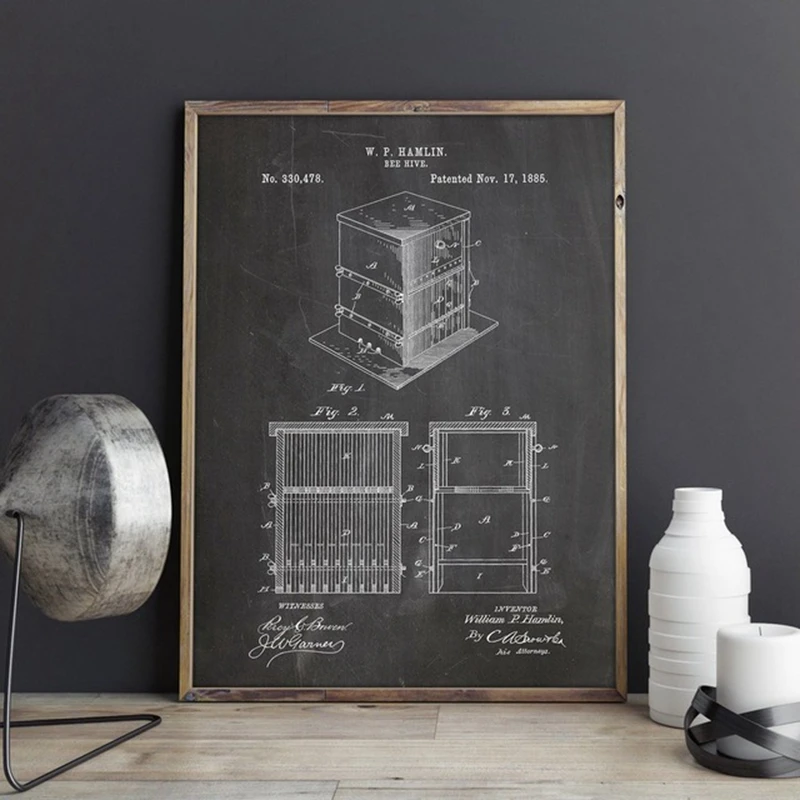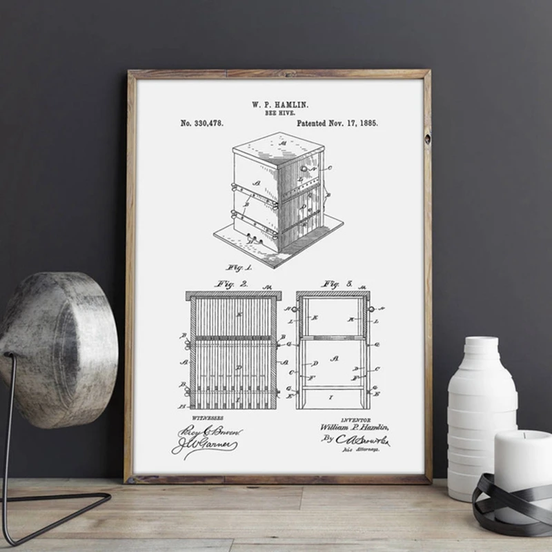 Патент пчеловодства, настенное искусство, постеры в виде пчелы, Декор, винтажная печать, схема, идея для подарка медсестре, настенные украшения
