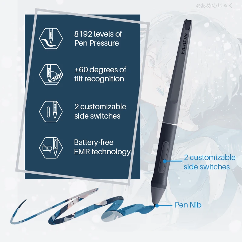 Графический планшет HUION HS611, стилус USB, 8192 уровня нажатия