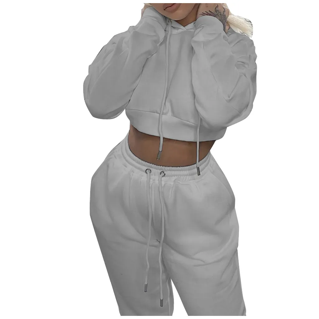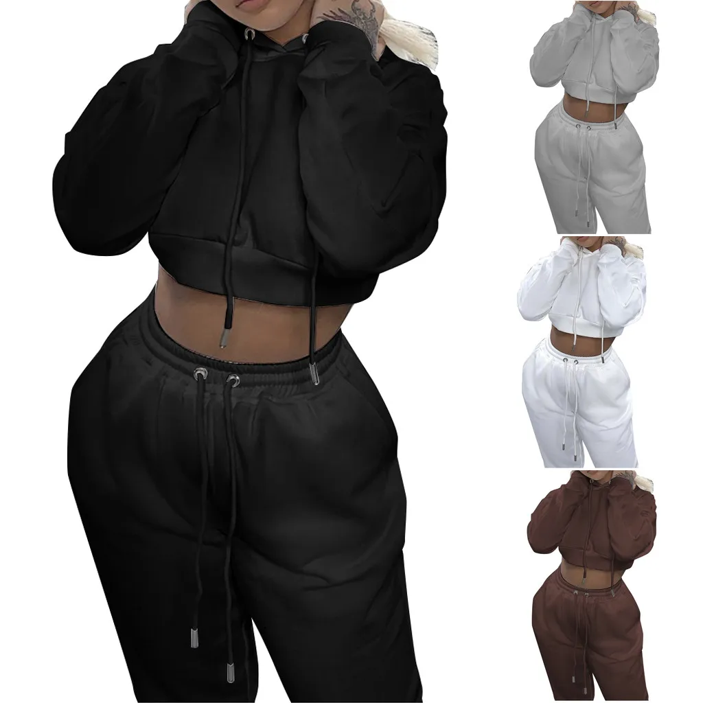 Женский Повседневный флисовый короткий свитер с длинными рукавами, брюки, спортивный костюм