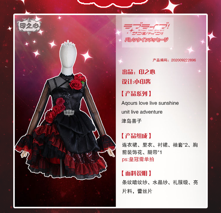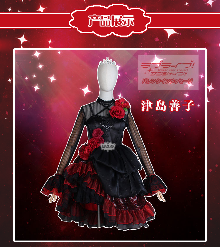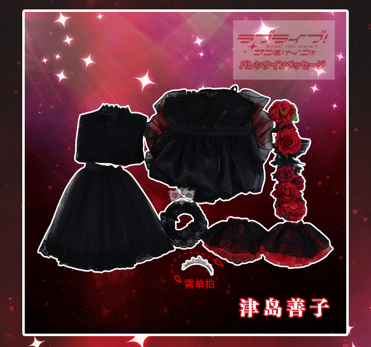 (1)Tsushima Yoshiko: платье + одежда + нижняя юбка + нарукавник * 2 + цветочное украшение на груди + ремень для ног * 1+ Корона