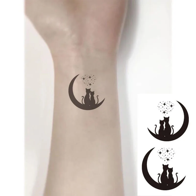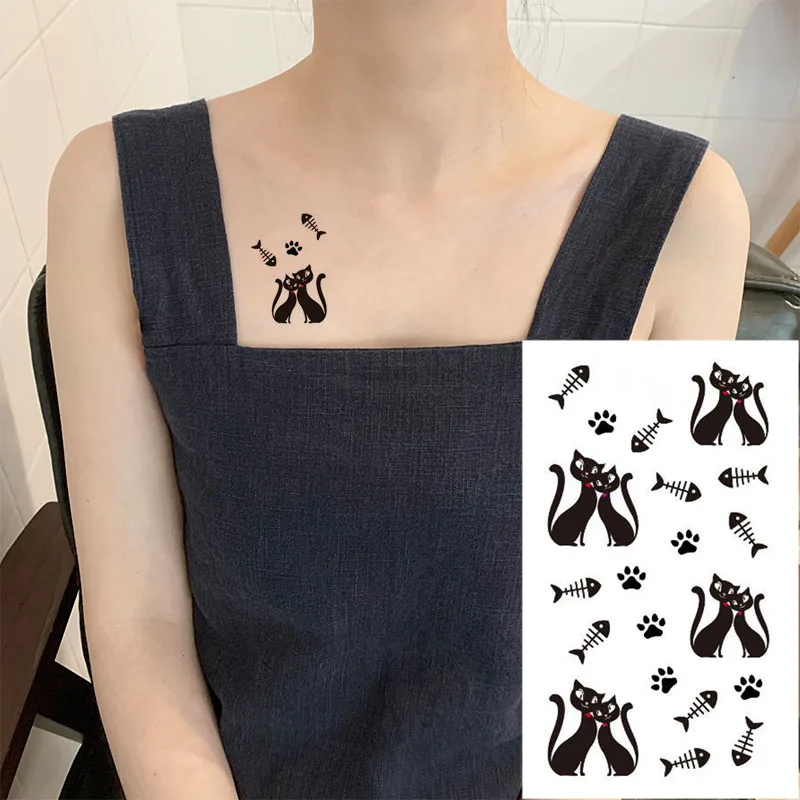 Водостойкая временная татуировка, наклейка для пары, черные кошки, ...