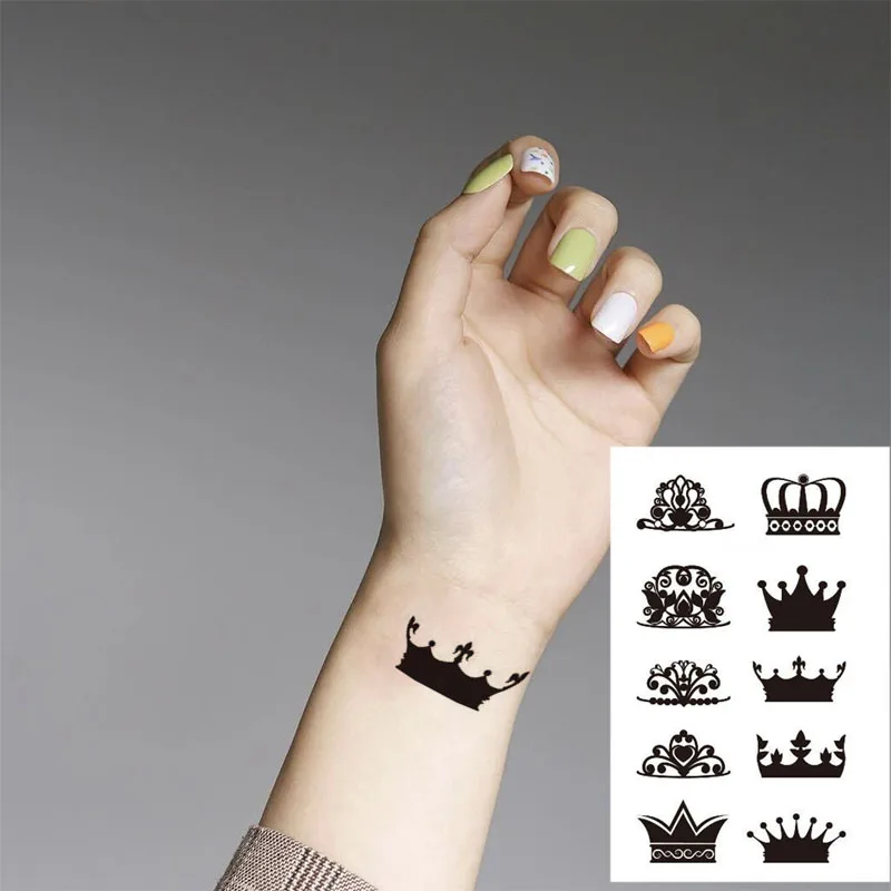 Водостойкая наклейка TemporaryTatoo пара Король Королева Корона художественная Татуировка Водная передача поддельные флеш-тату для мужчин и женщин
