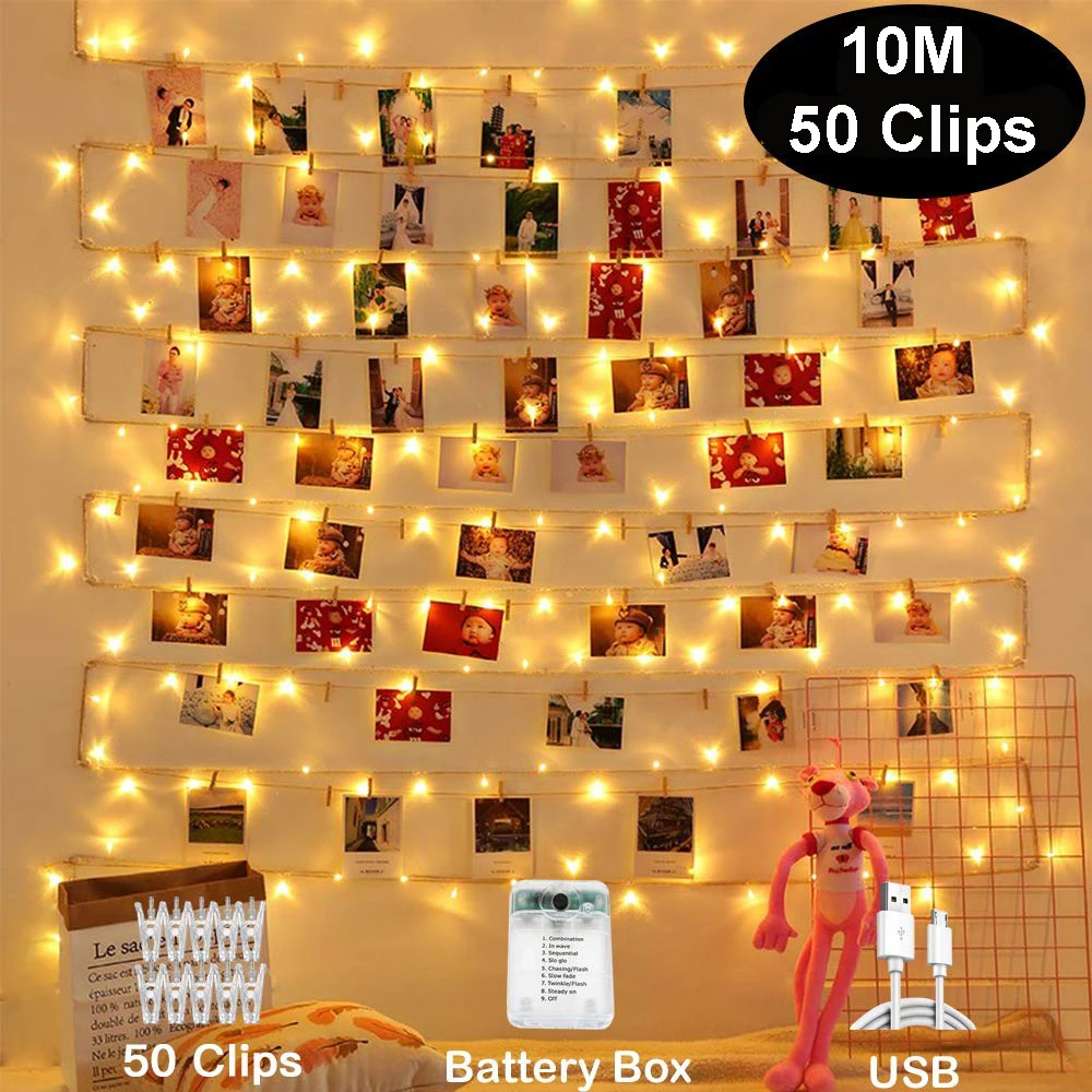 5 м10 м фото клип USB LED Рождественский Сказочный фон светильник на открытом воздухе Батарея управляемый Светодиодные строки Свадебная гирлянда Новый год праздник деко