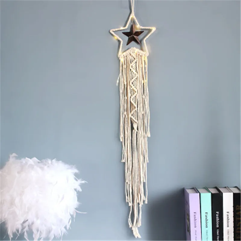 Луна и звезда макраме настенный гобелен висит Бохо луна звезды Ловец снов на стену подвесной кулон для детей девочек украшение для спальни