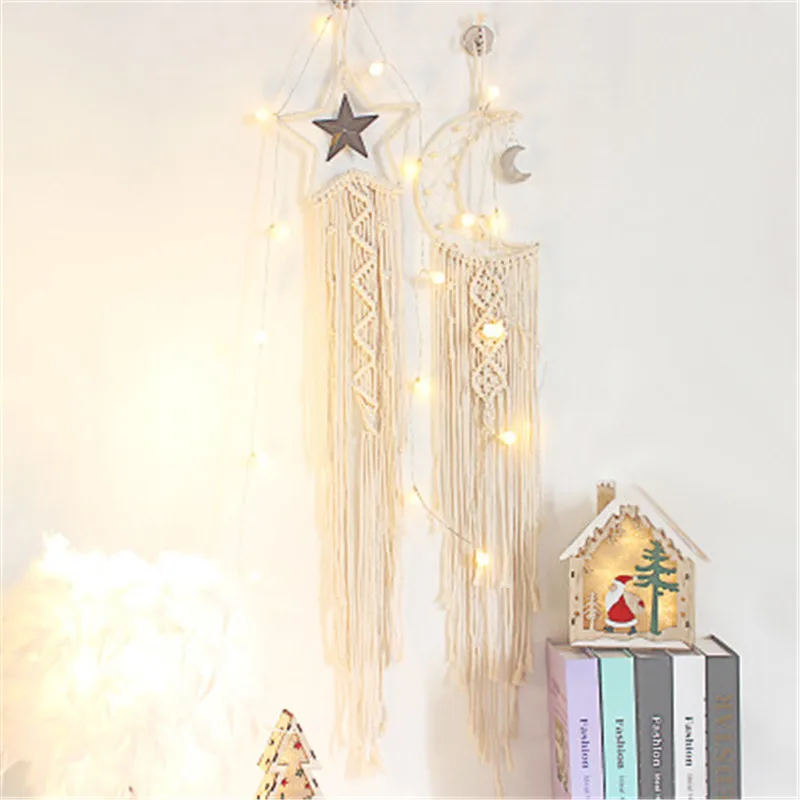 Луна и звезды макраме настенный гобелен в богемном стиле с Луной и звездами Ловец снов на стену висящий кулон для детей девочек Спальня украшения