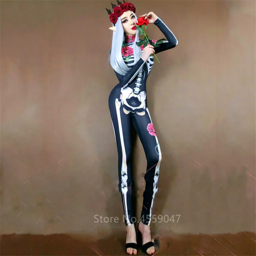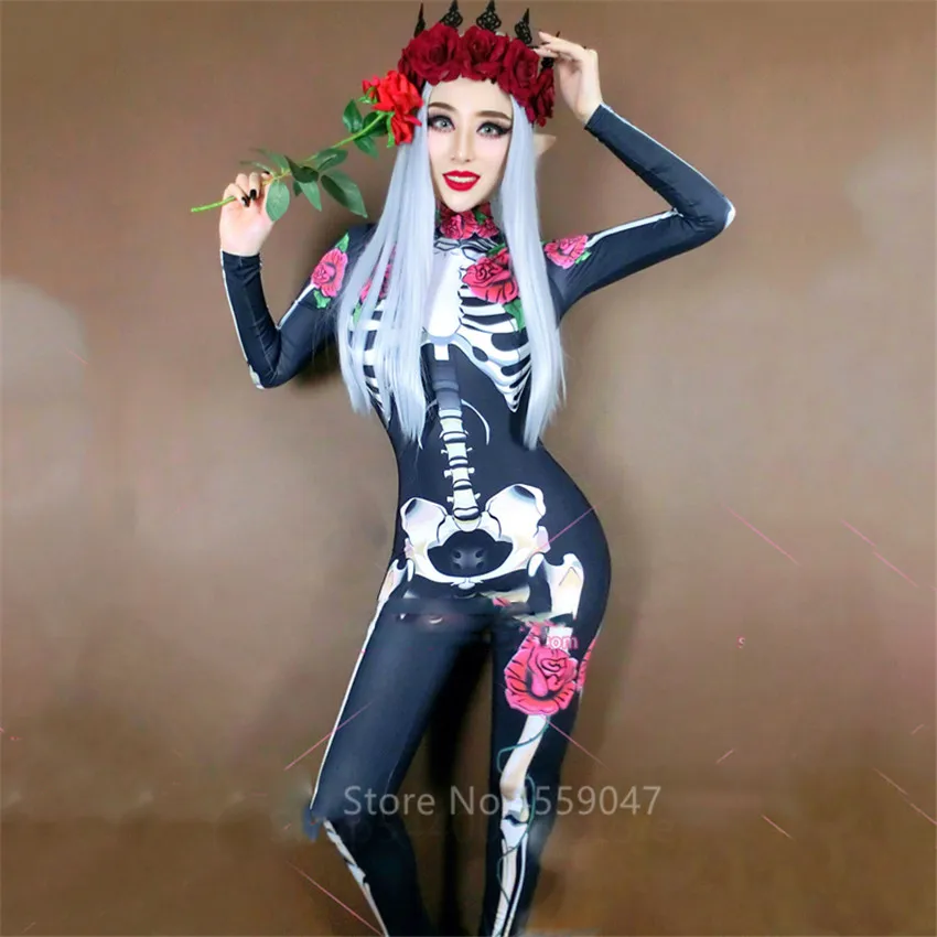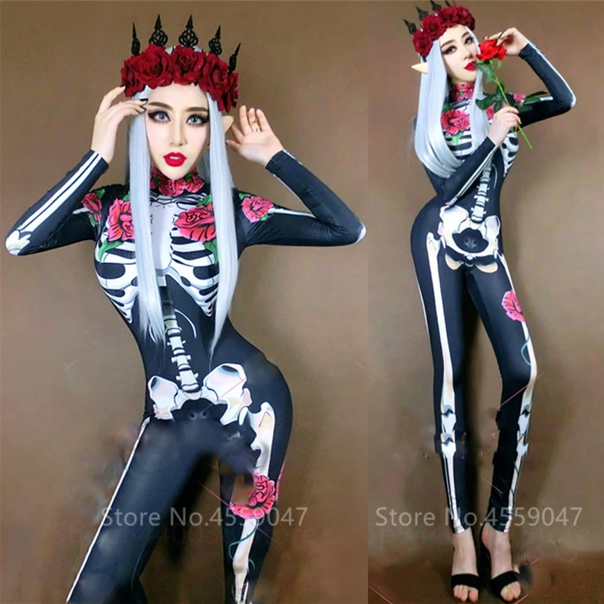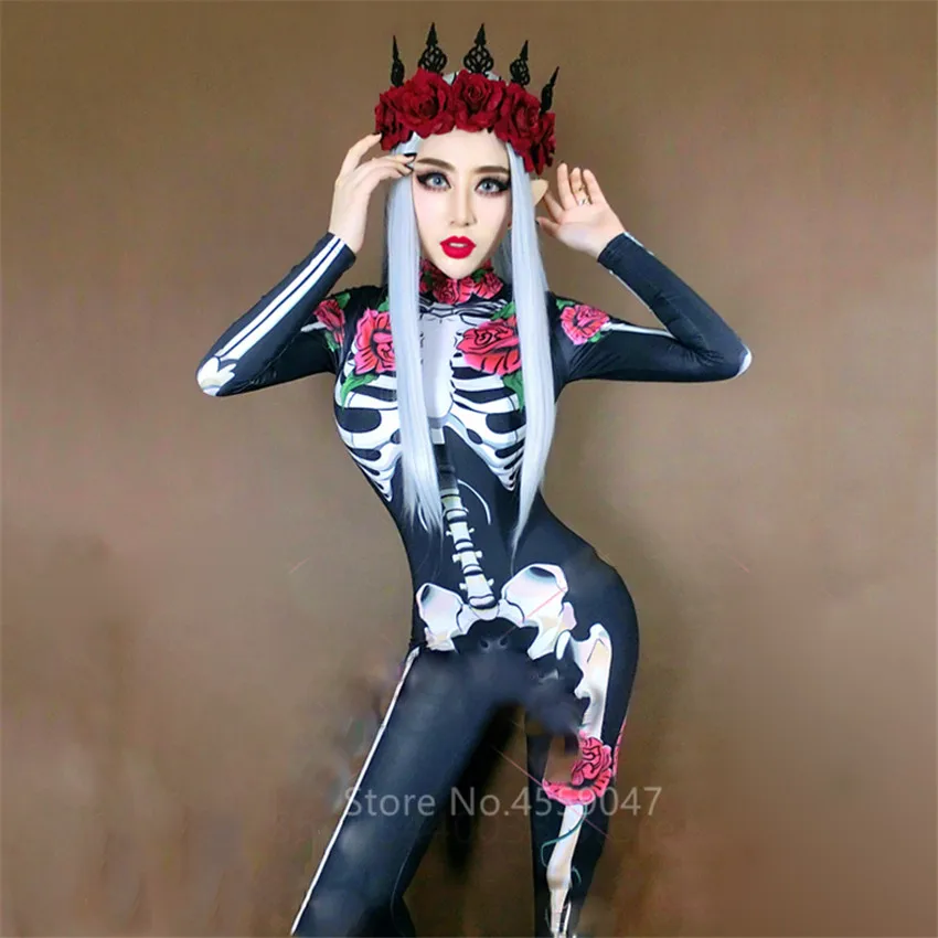 Ghost Bride Косплей страшные костюмы на Хэллоуин женский комбинезон ужасов Розовый Скелет принт карнавальные вечерние королевские сексуальные боди