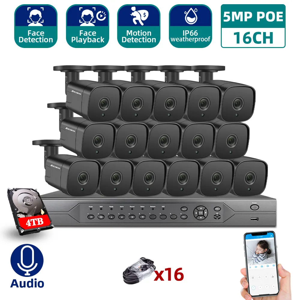 Сетевая Видеосистема безопасности 16CH 4K Ultra HD POE 5 Мп H.265 + сетевой видеорегистратор с 16 шт. 5 Мп аудио IP комплект безопасности