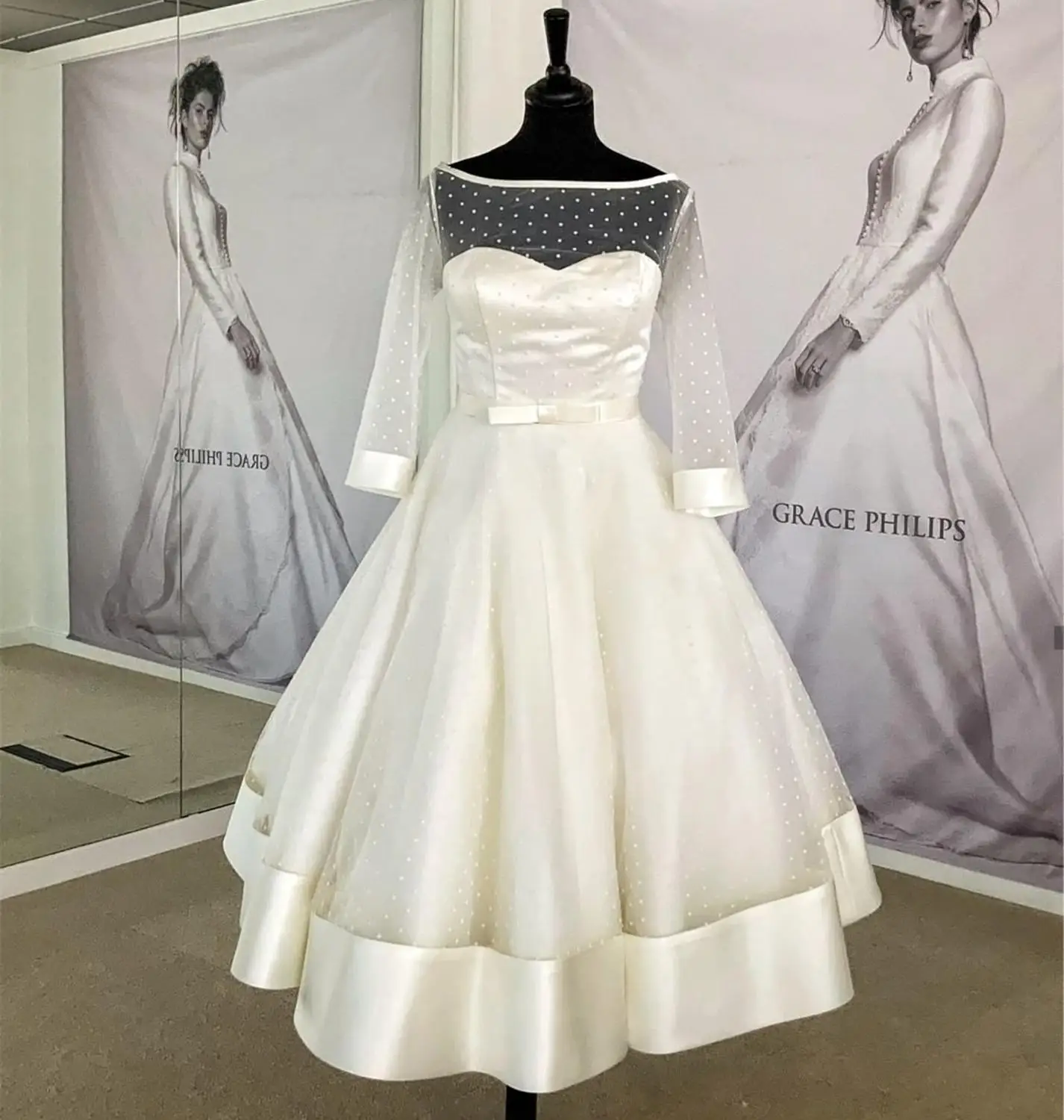 Короткие свадебные платья с вырезом лодочкой 2021 белое свадебное п...