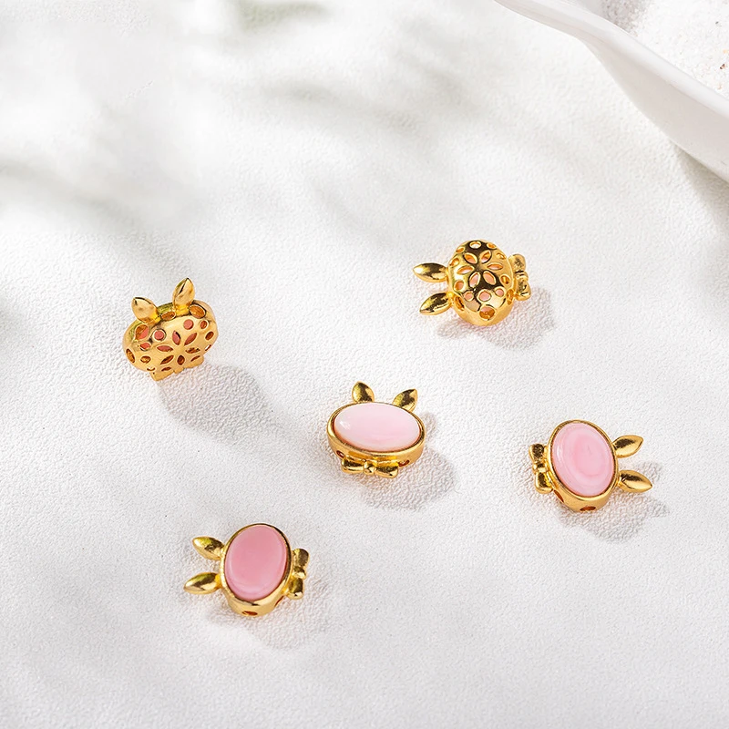 Серебро S925 пробы, золотой кулон в форме сердца, инкрустация королевой карминной раковиной, бусины, сделай сам, день рождения, День Святого Валентина, для подарков