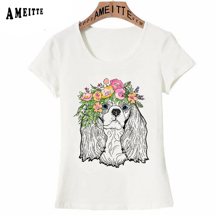 Футболка женская с цветочным принтом, повседневная Милая рубашка для девушек, кошек для домашних питомцев, кошельков, спаниель, цвет белый
