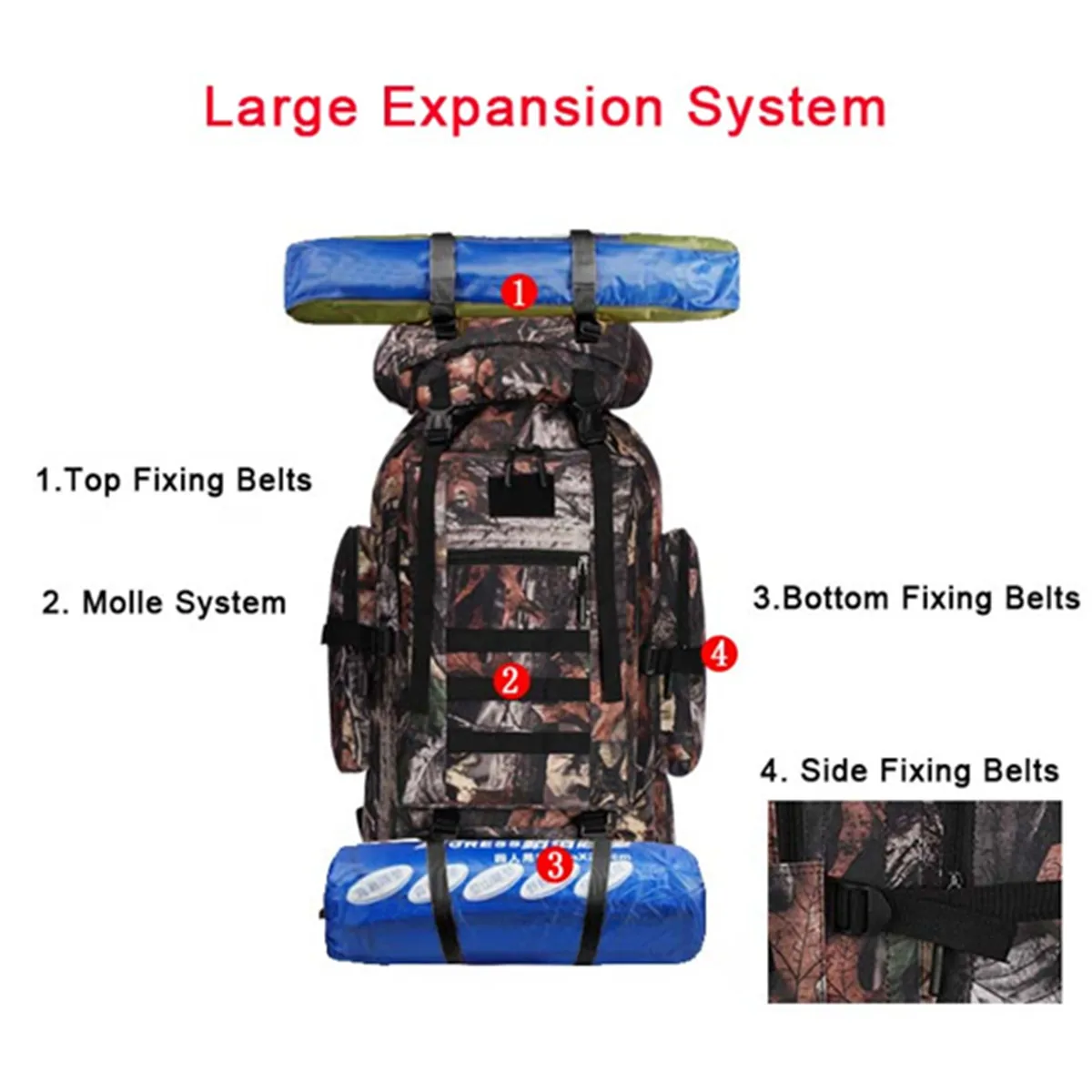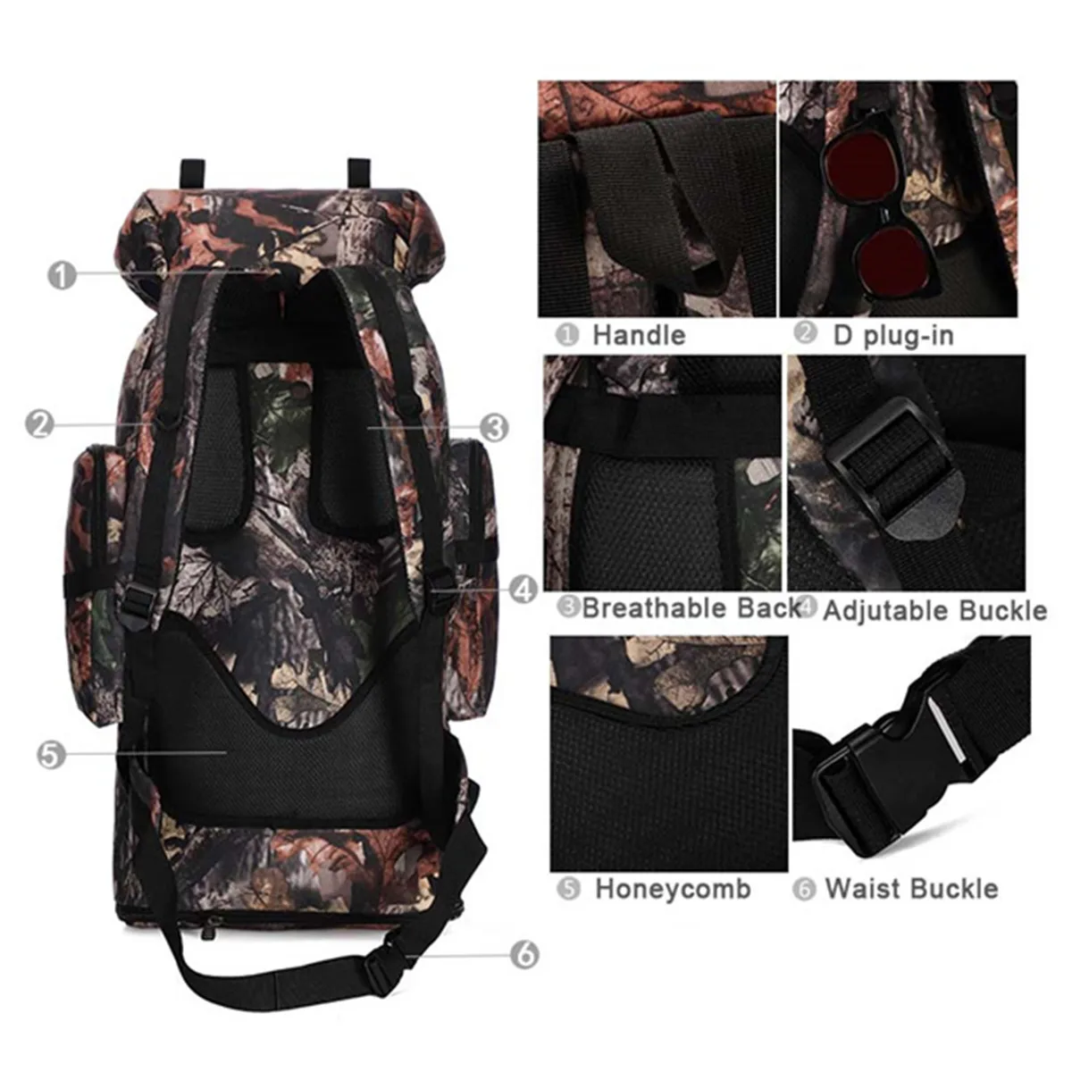 Рюкзак мужской, женский, спортивный, камуфляжный, с мягкой спинкой, 100 л