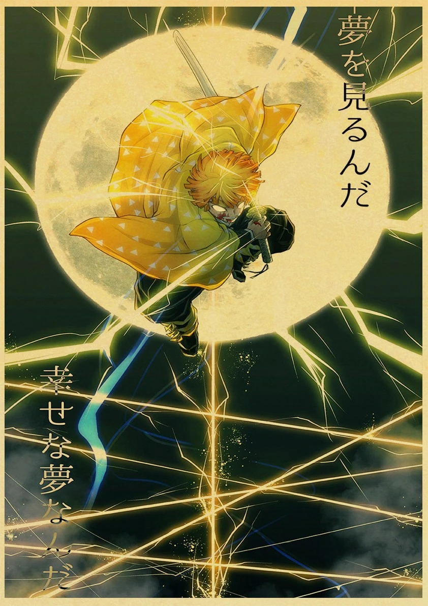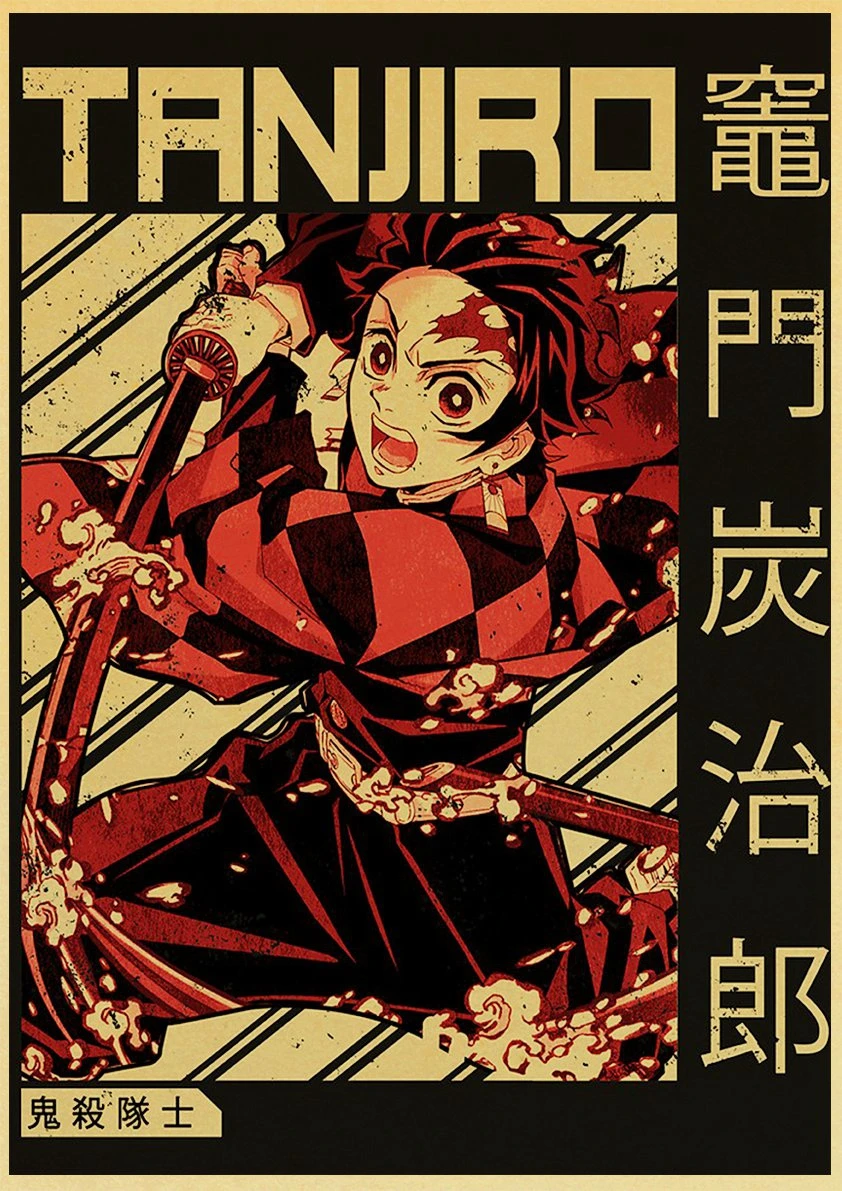 Постер из аниме рассекающий демонов, винтажные постеры из крафт-бумаги в стиле аниме no Yaiba Tanjirou Nezuko для дома и комнаты