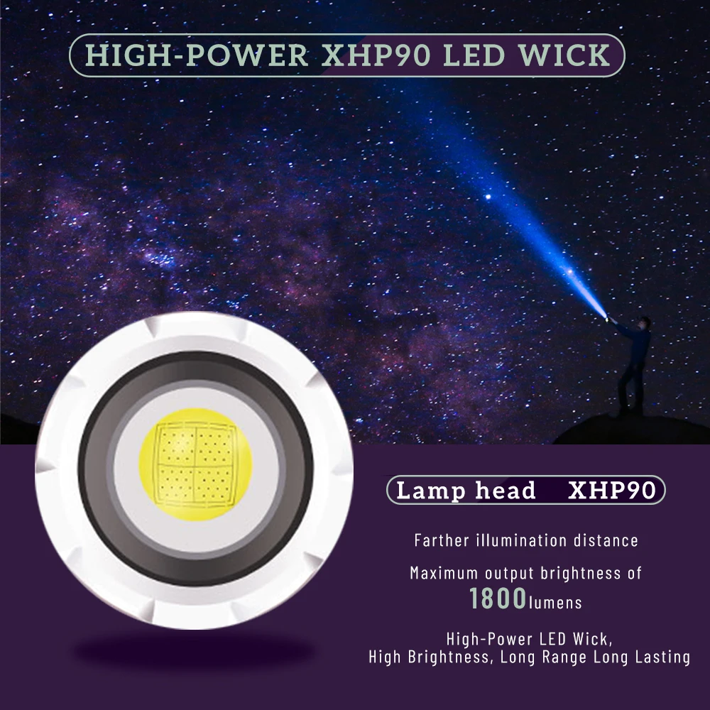 2021 XHP90 тактический флэш-светильник высокой мощности флэш-светильник USB Перезаряжаемый зум-фонарь водонепроницаемый светильник для кемпинга на открытом воздухе Lanterna
