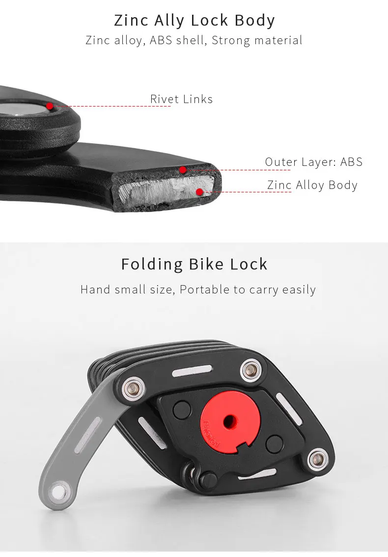 Велосипедный складной замок Бренд: PAW Материал: цинковый сплав Размер: около 83 см Тип замка: 2 ключа складной замок Особенности: уровень защиты от кражи 9, с креплением аксессуаров, легко монтируется под седлом или в других местах, прочный материал из цинкового сплава высокой надежности.
