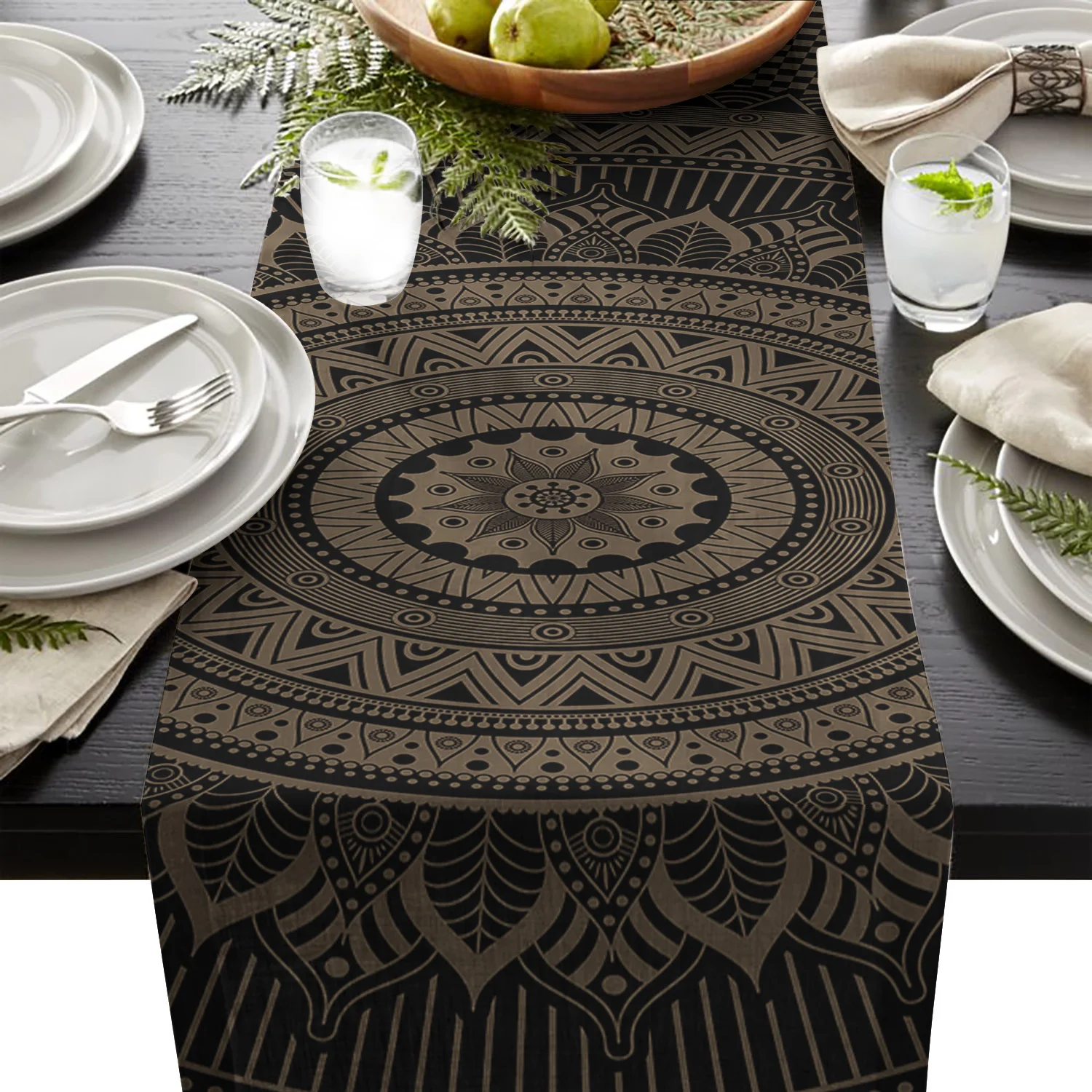 Бегунки на стол в стиле хиппи, черная мандала, в богемном стиле, для свадьбы, Рождественского торта, с цветами, скатерть, украшение для дома