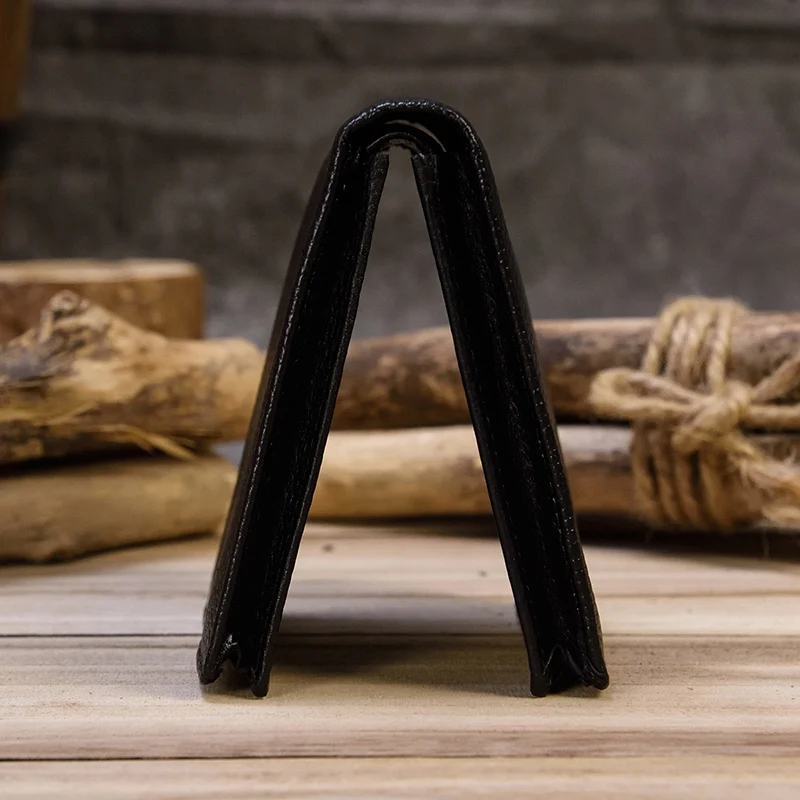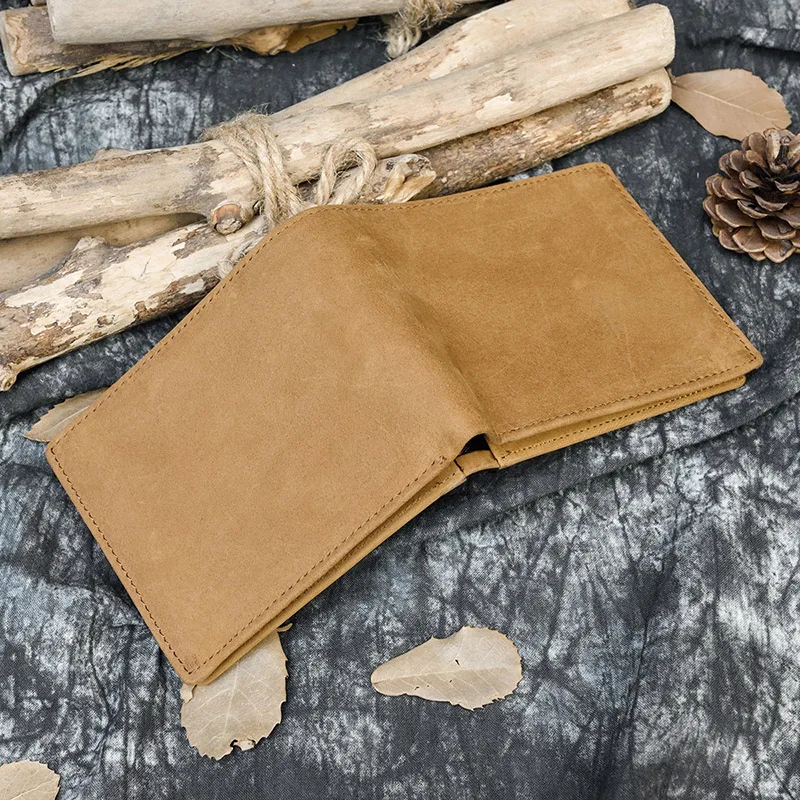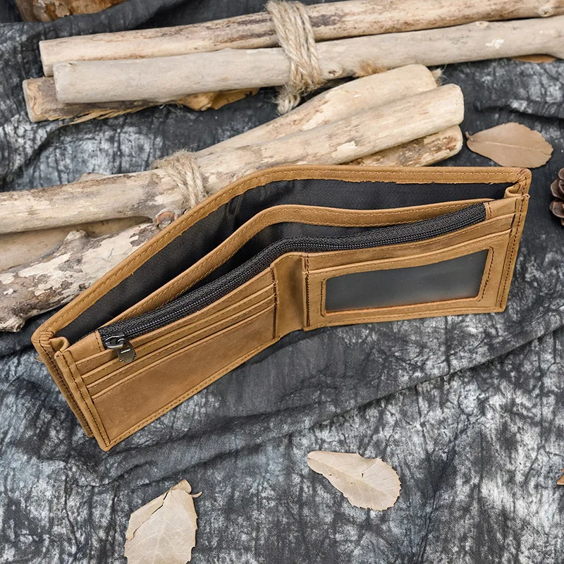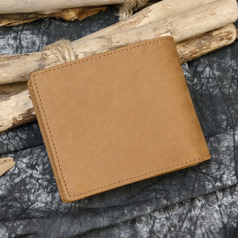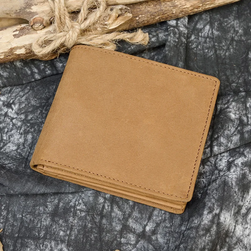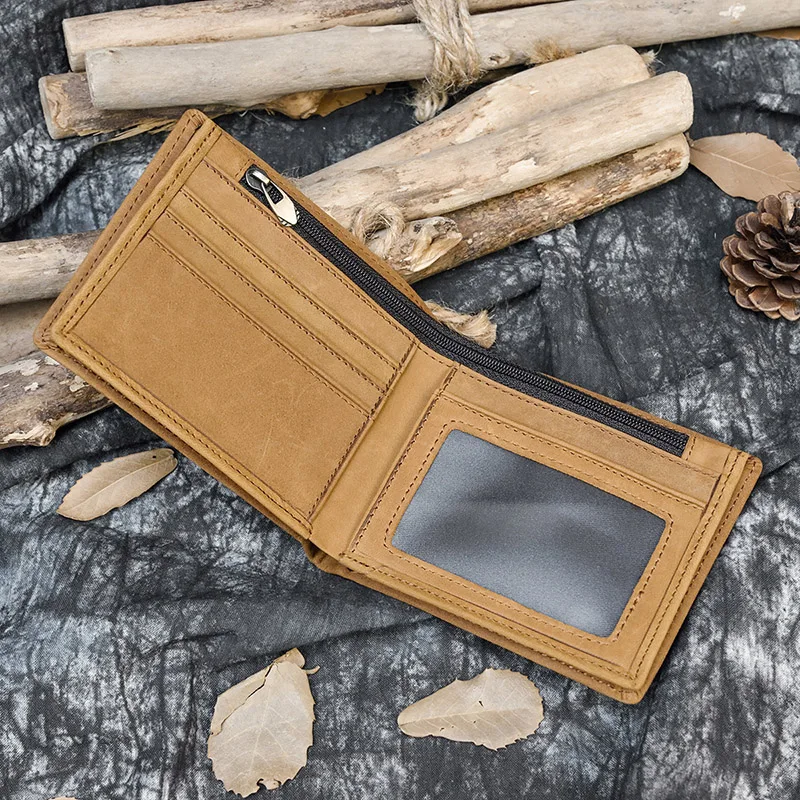 Кошелек мужской из натуральной кожи Crazy Horse, короткий винтажный бумажник с кармашком для мелочи, функциональный клатч с кредитницей коричневого цвета