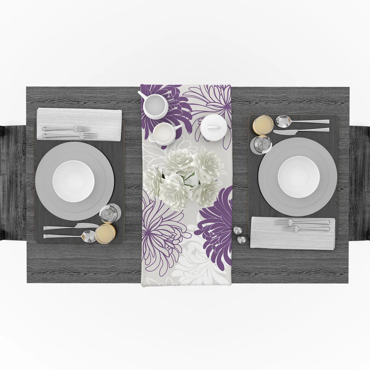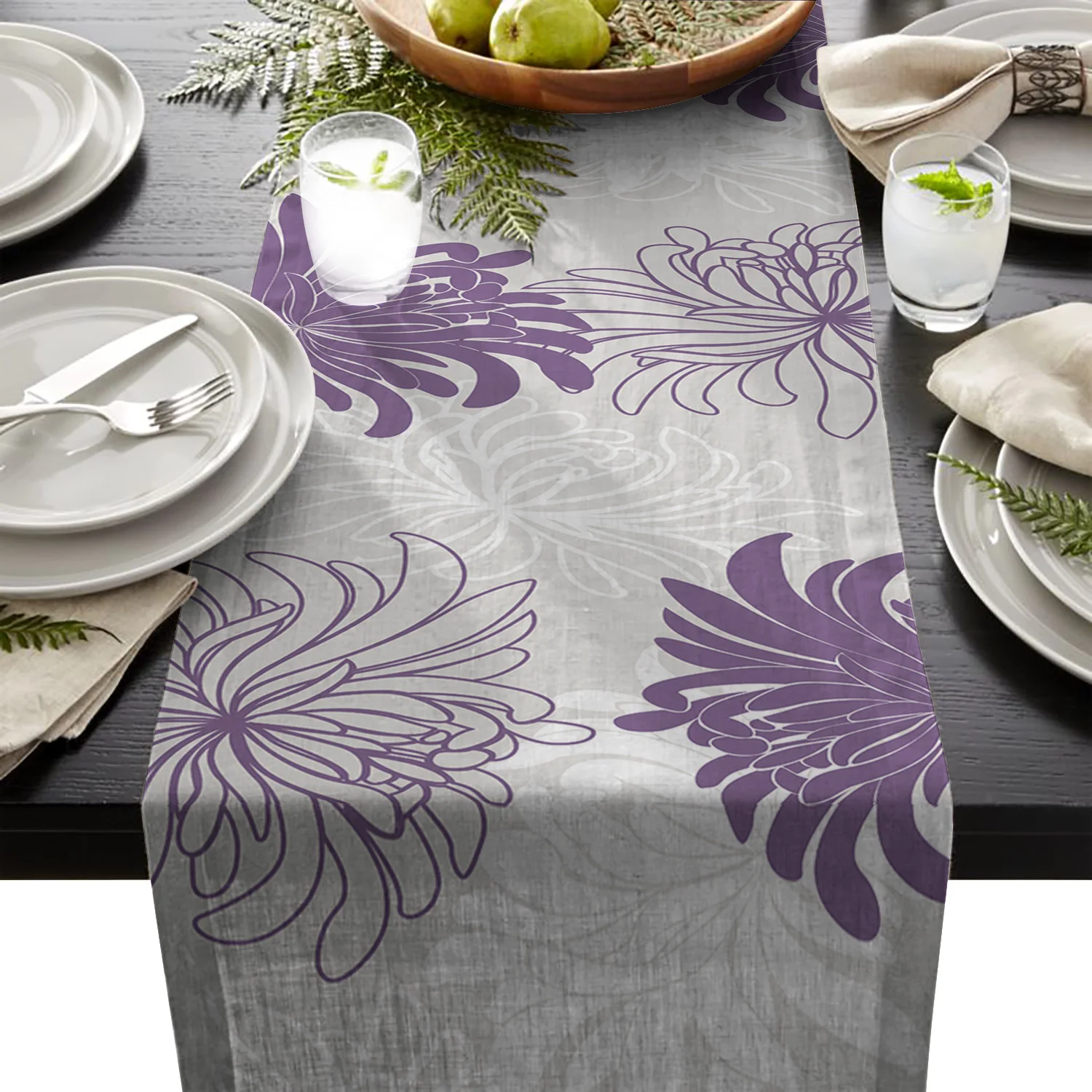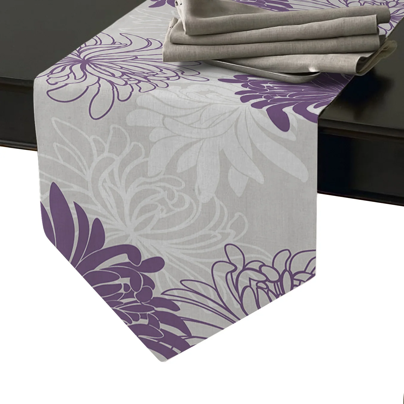 Фиолетовая белая скатерть с хризантемами, настольная дорожка с флагом, украшения для домашней вечеринки, скатерть