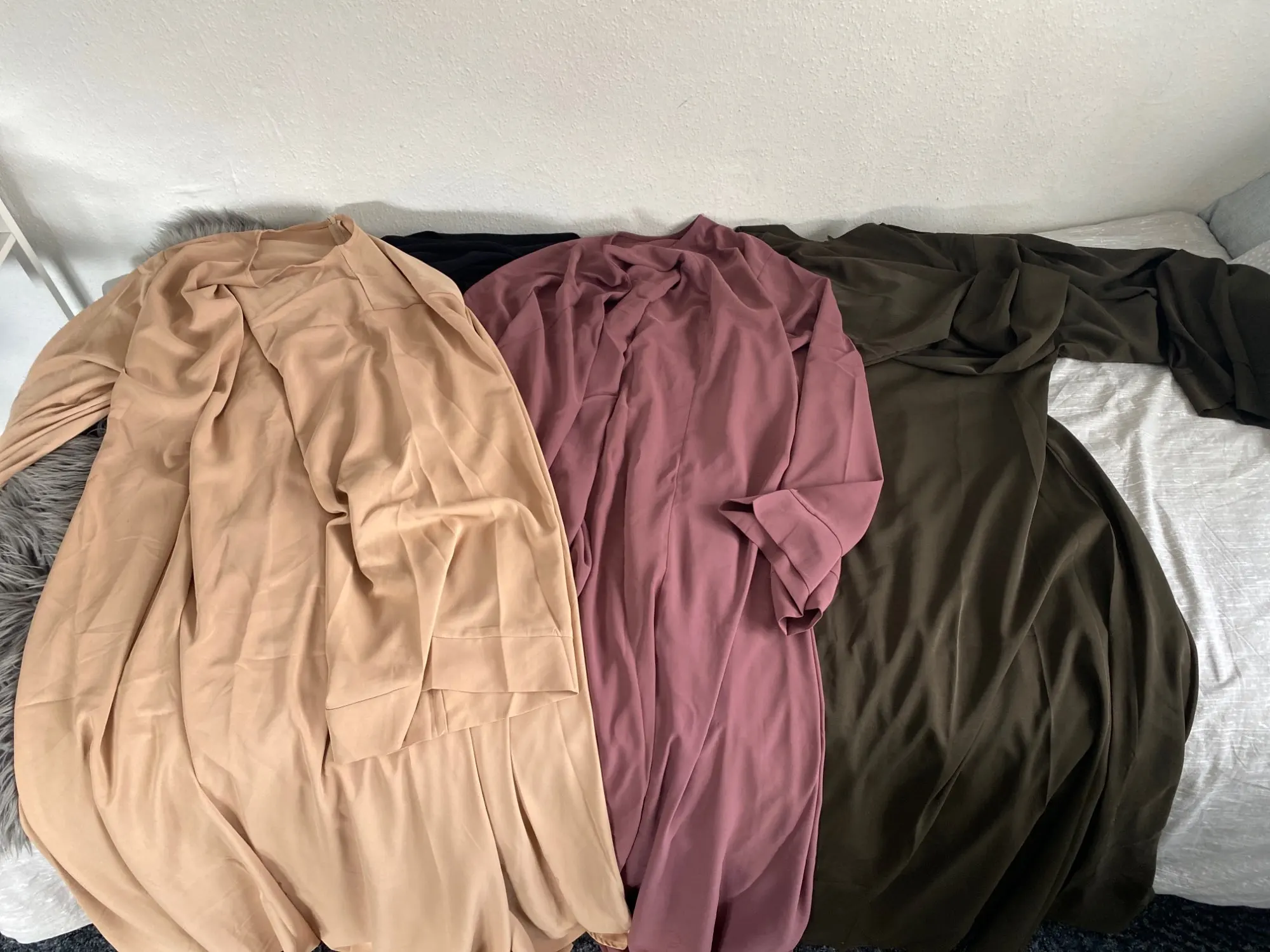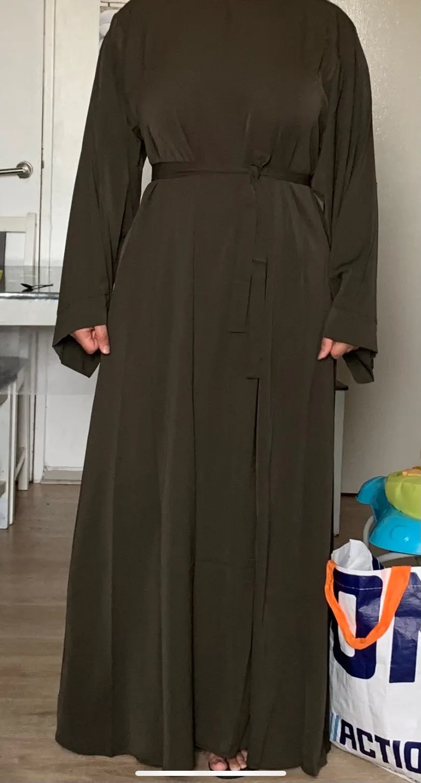 Я буквально влюблен в эти abaya, этот материал шелковистый летом, мы дышам с ним. Честно говоря, я не ожидал этого вообще от Aliexpress, но они идеальны, включая длину (я также купил цвет верблюда)