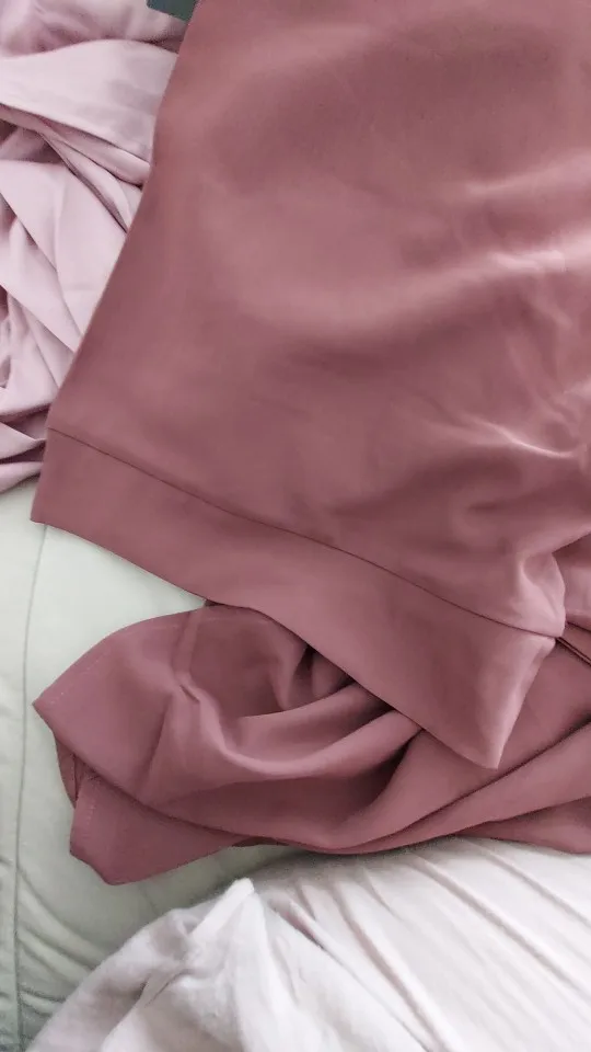 Очень хорошая ткань, легкая, не очень морщинистая и совсем не прозрачная, она прибыла менее чем за 10 дней. Размер я взял 2xl, так как я ростом 168 см, и мне нравится длина и ширина (они на два размера больше, чем я использую) Я обязательно куплю больше цветов очень элегантно и красиво!
