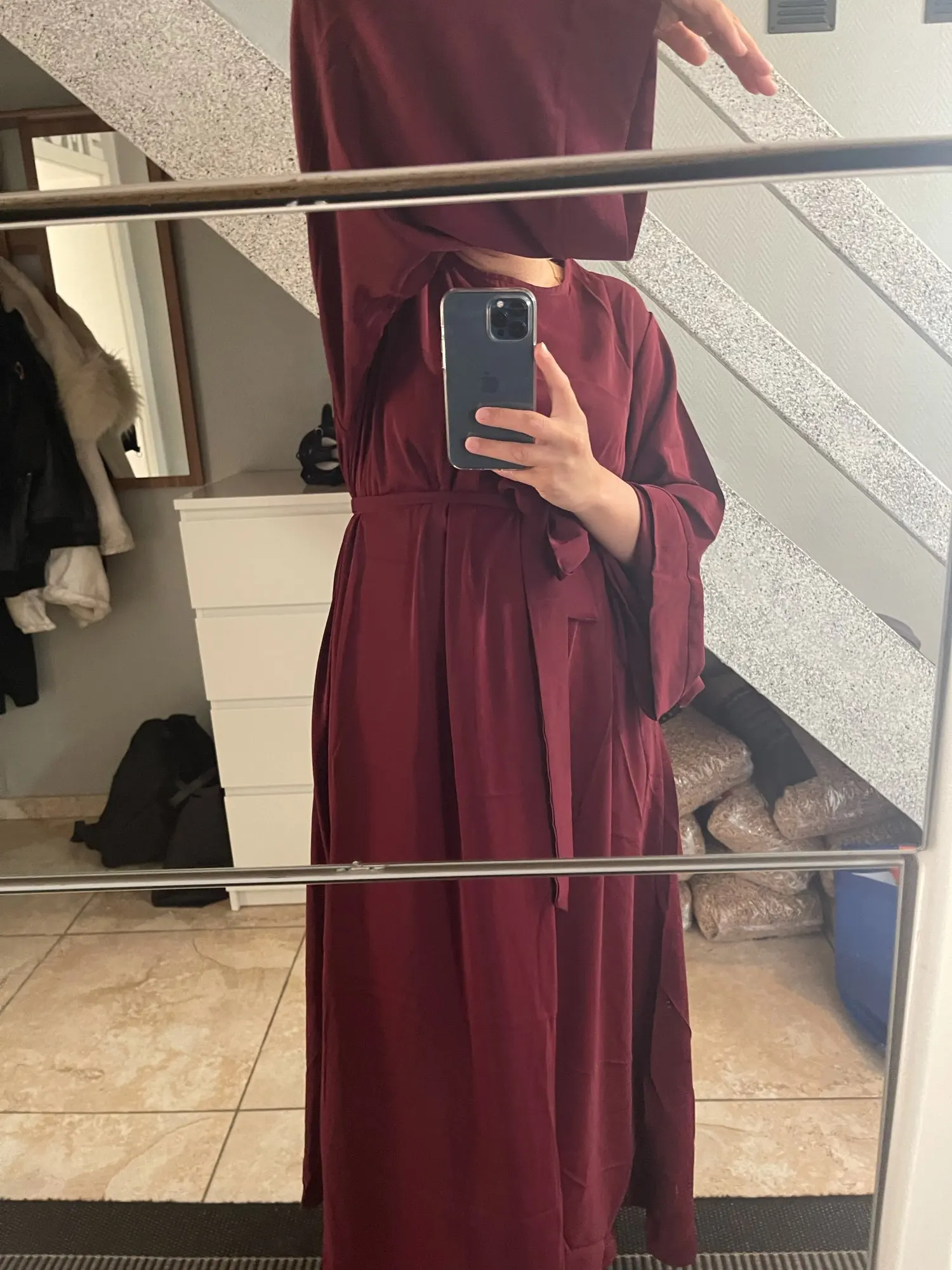 Хорошее падение Сделано очень красиво. Это стильно и шикарно. Я ношу его с бордовым красным хиджаб. Это выглядит великолепно. Я возьму его в другом цвете, чтобы смешать цвета с хахаха. Супер быстрая доставка