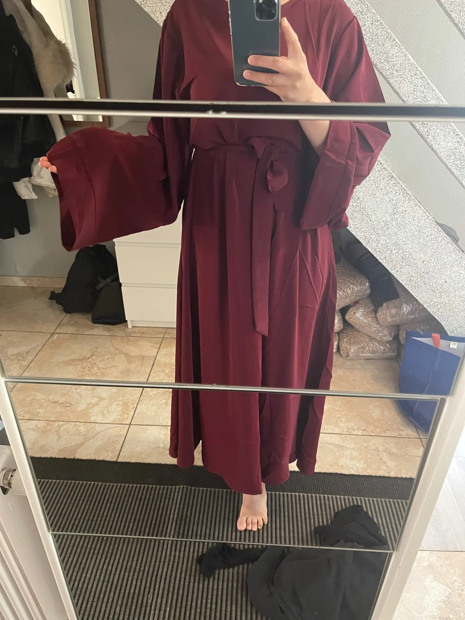 Просто Абая прибывает ясно, что это прекрасно. У меня есть цена 2XL, чтобы она была широкой (1m72), и она падает на землю, как мне нравится. Доставка: 2 недели идеально!