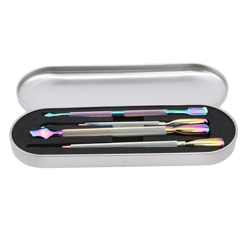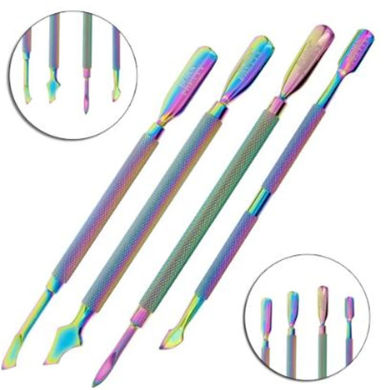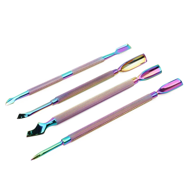 4 стиля/Набор для удаления омертвевшей кожи Радуга из нержавеющей стали для маникюра и педикюра инструмент для дизайна ногтей двухсторонний Хамелеон кутикулы для ногтей толкатель