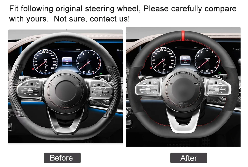 Подходящая модель автомобиля (для справки):ForMercedes-Benz A-Class W177 2018-2019/ B-Class W247 2019/ C-Class W205 2018-2019/ E-Class W213 2018-2019/ S-Class W222 2018-2019/ G-класс W463 2018-2019/ GLC 2020/ CLA 2020/ GLS 2019-2020/ CLS 2018-2020.(Только для справки, пожалуйста, внимательно сравните рулевое колесо с оригинальной фотографией рулевого колеса, если вы не уверены, пожалуйста, не стесняйтесь обращаться к нам.)
