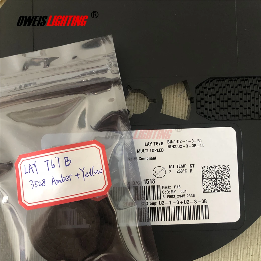 20 шт. 3528 янтарный + желтый PLCC-4 обратный полюс, 617nm + 587nm , 50mA 2V 0,1 w биколор smd светильник лампы световые бусины LAYT67B LAY T67B