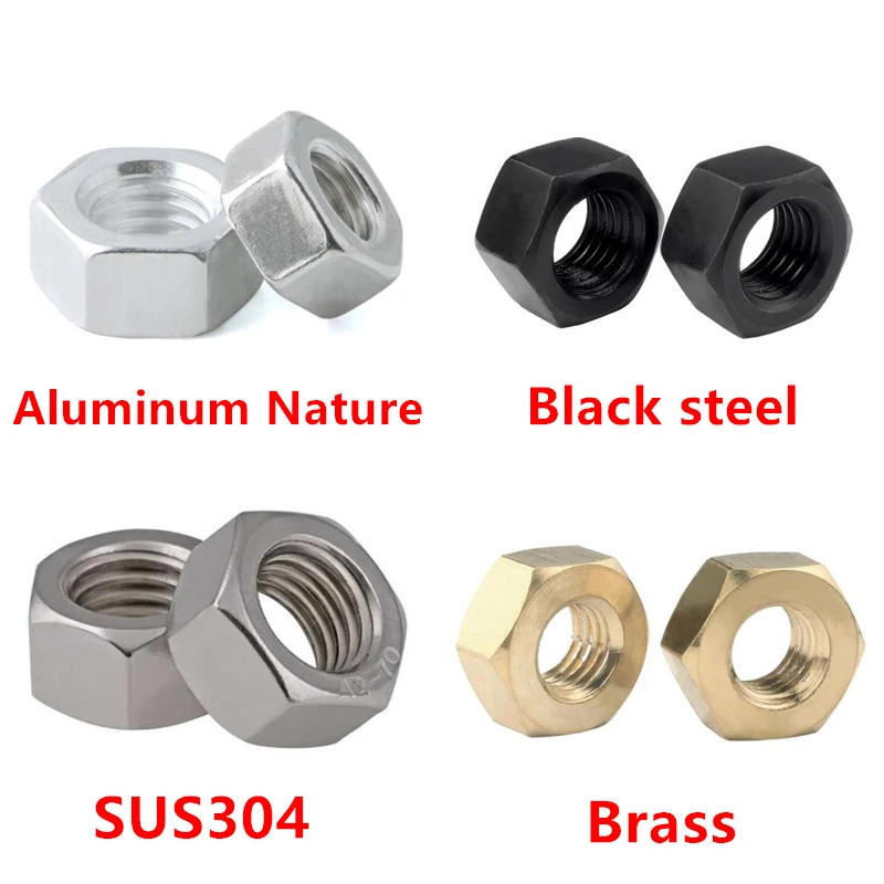 Шестигранные шестигранные гайки, метрические DIN934 M1 M1.2 M1.4 M1.6 M2 M2.5 M3 M4 M5 M6 M8 M10, латунь, углеродистая сталь, нержавеющая сталь, алюминиевые шестигранные гайки