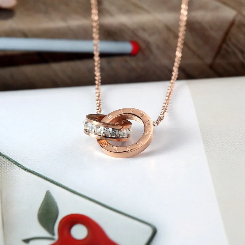 Колье с кристаллами и римскими цифрами, женское ожерелье с двойной пряжкой, Женское Ожерелье из титановой стали до ключиц, подвеска, ювелирные изделия
