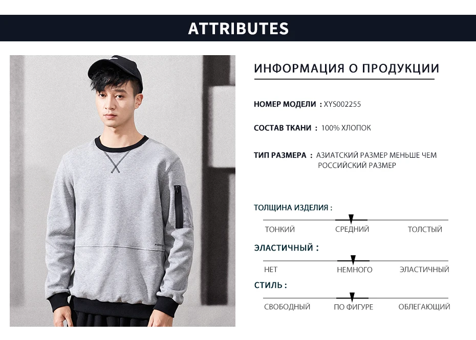 Pioneer CampЗимние толстовки с капюшоном; Мужские теплые плотные толстовки из 100% хлопка в стиле хип-хоп; Уличная мужская одежда; XYS002255