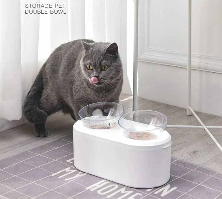 Наклонные двойные миски для кошек и еды, миски для воды для кошек, кормушки для собак, товары для домашних животных с функцией хранения, защита шеи, забавное стекло