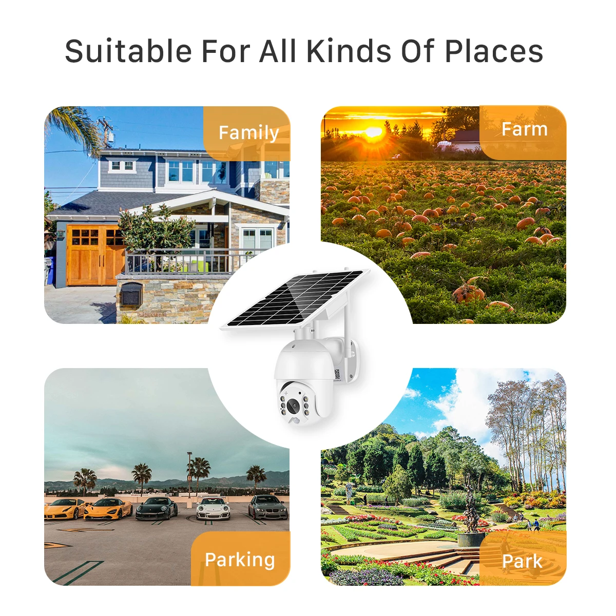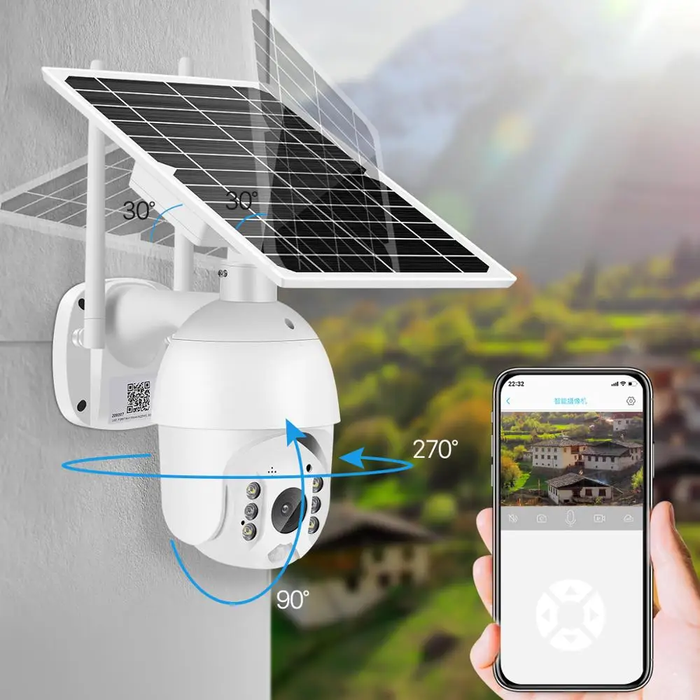 100% провода бесплатно и легко установить; Отсканируйте qr-код для подключения камеры безопасности к вашему телефону через бесплатное приложение; Бесконтактный Солнечный источник питания с собственной солнечной панелью и батарейным блоком