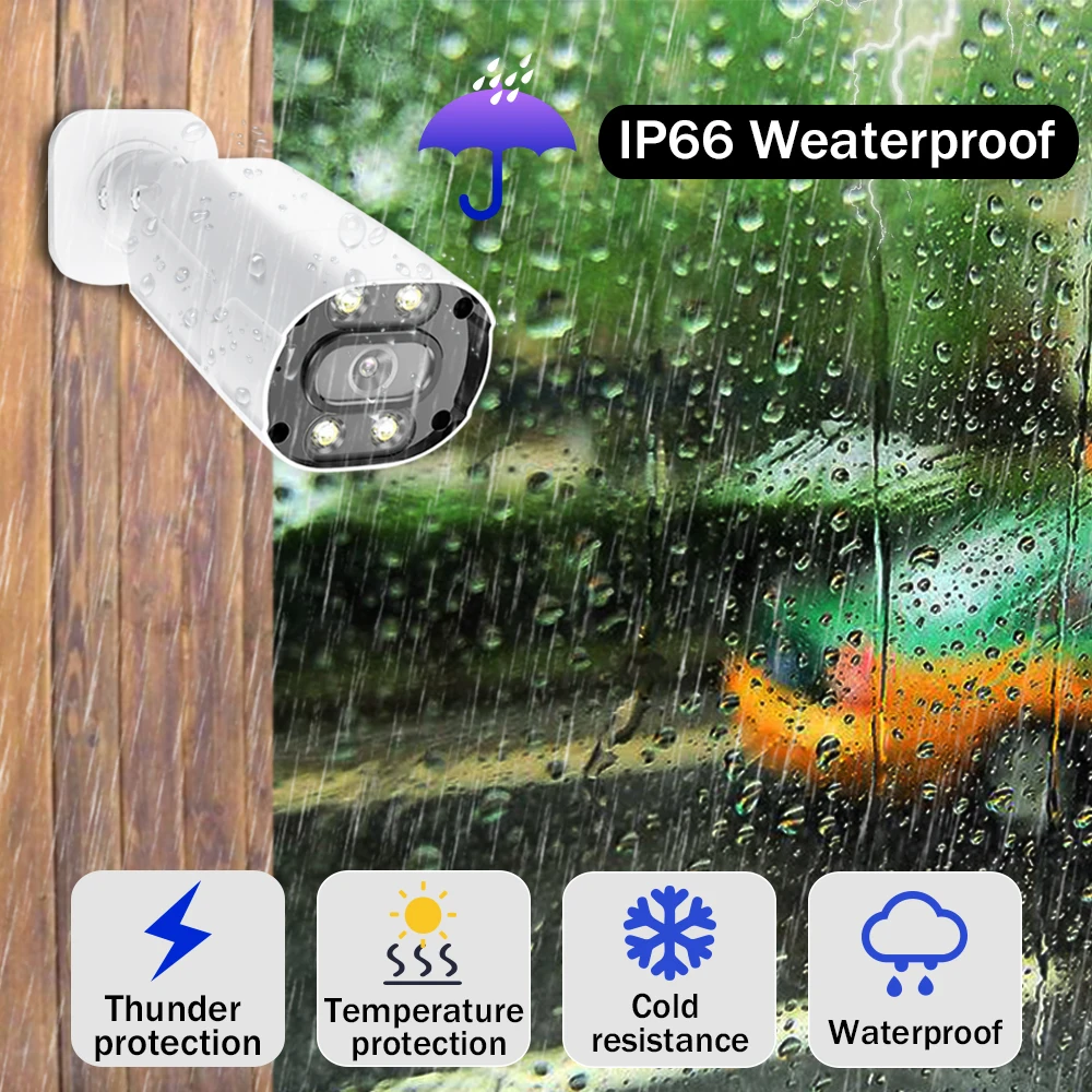 Используйте их в качестве наружных камер или крытых камер, так как они построены жестко, выдерживает любую погоду: дождь, снег, пыль и жаркие дни. С защитой от атмосферных воздействий IP66 и кабелями, просвечивающимися через подставку для защиты, гарантируем, что вы сможете ответить на их производительность, день в день. Наша камера имеет сверхпрочный металлический корпус, профессиональный IP66, устойчивый к атмосферным воздействиям, обеспечивая стабильную производительность как внутри, так и снаружи.