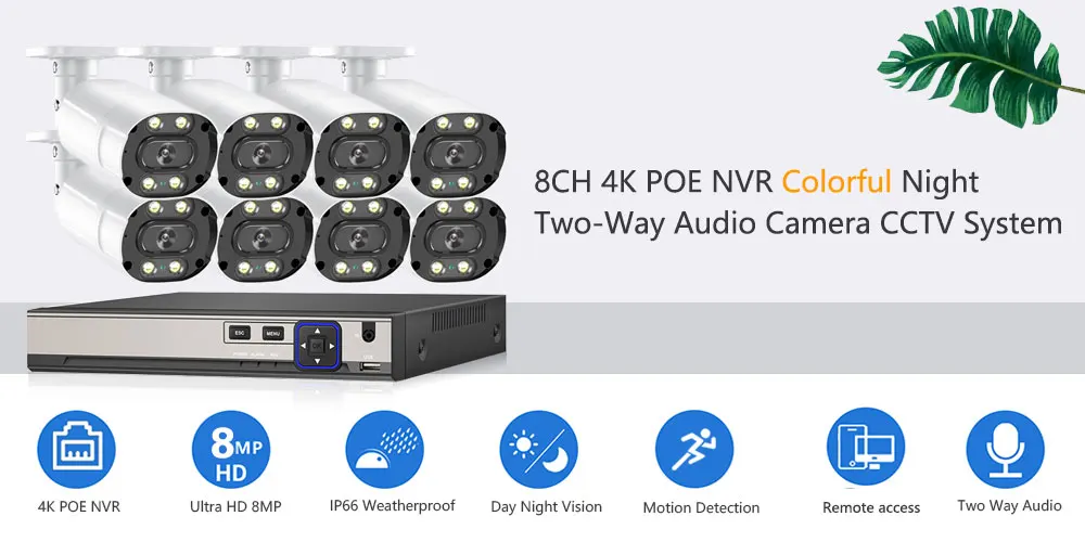 1. Все наши NVR и камеры являются реальными H.265 4K 8MP, NVR может поддерживать 8MP и 4K max, вы можете подключить 720p,1080p,3mp,4mp ,5mp, камеры 8mp & 4k с нашим POE NVR;2. Наш NVR поддерживает распознавание лиц, умное воспроизведение лица, обеспечивает ультра высокое разрешение видео наблюдения, обеспечивая максимальную детализацию и четкость в наличии;3. Наш NVR и камеры поддерживают расширенное H.265 Сжатие видео, питание через Ethernet, подключи и работай, простота установки;4. Все камеры встроены в микрофон и динамик, поддержка двухсторонней аудиозаписи;5. Все камеры имеют металлический корпус, IP66 водонепроницаемый, подходит для внутреннего и наружного использования, надежная Домашняя безопасность;6. Все камеры поддерживают Ultra HD Full Color Day Night Vision;7. Поддержка обнаружения движения, оповещения по электронной почте, воспроизведения видео и многоязычности;8. Поддержка Android,Iphone,Ipad,PC,VMS,P2P view;9. Удаленный доступ в любом месте, в любое время;10. Подходит для всех видов мест применения;