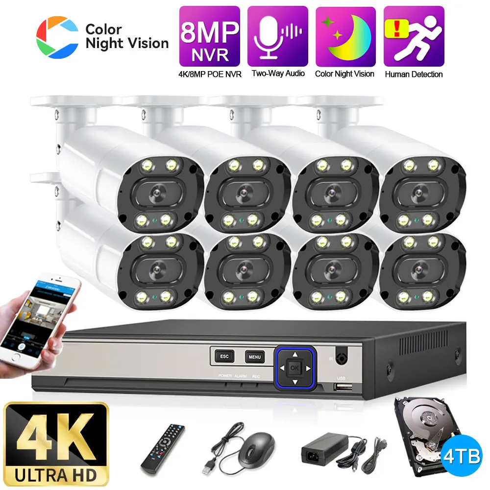 8CH 5MP 8MP 4K H.265 POE NVR комплект CCTV система безопасности Открытый P2P двусторонний аудио Colorvu Ночное видео наблюдение IP камера набор