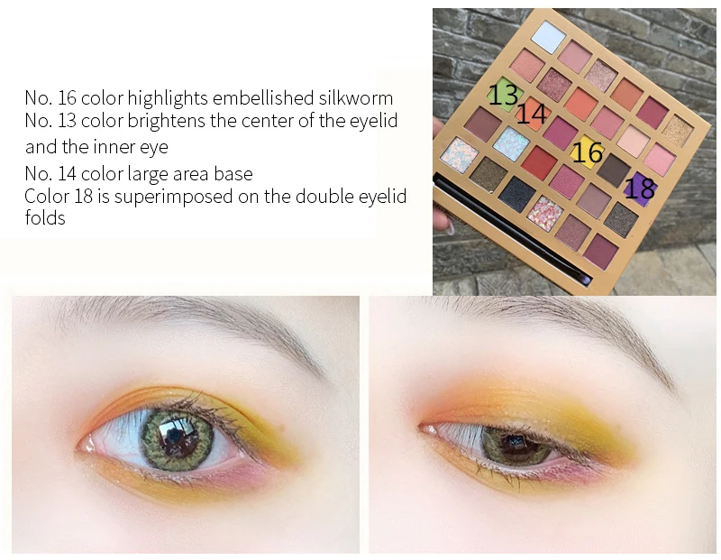 Палитра теней для век состоит из 30 цветов мягкого блеска и матовой текстуры пудры.