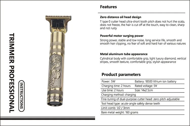 Машинка для стрижки волос Мужская, из углеродистой стали, беспроводная, масляная голова